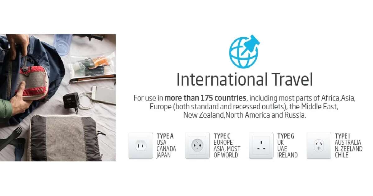 - 6 világméretű dugótípus kompatibilitás (EU/UK/AU/USA/JP/UAE)