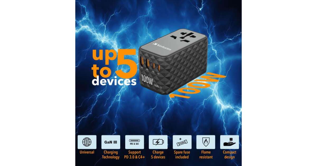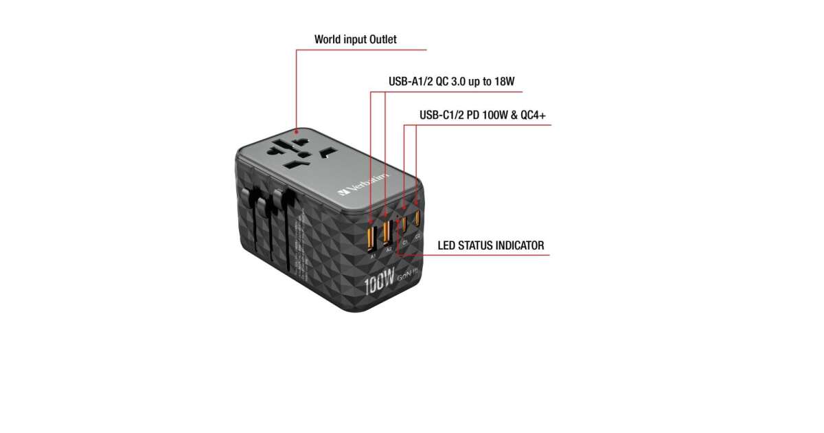 Verbatim Univerzális Utazói Adapter GaN III: 100W teljesítmény, bárhol a világon 🌍