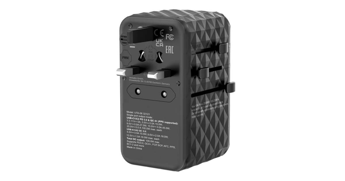 Verbatim Universal Travel Adapter GaN III UTA-06, 2xUSB-C, PD 100W a QC4+/2xUSB-A QC 3.0 Black leírása