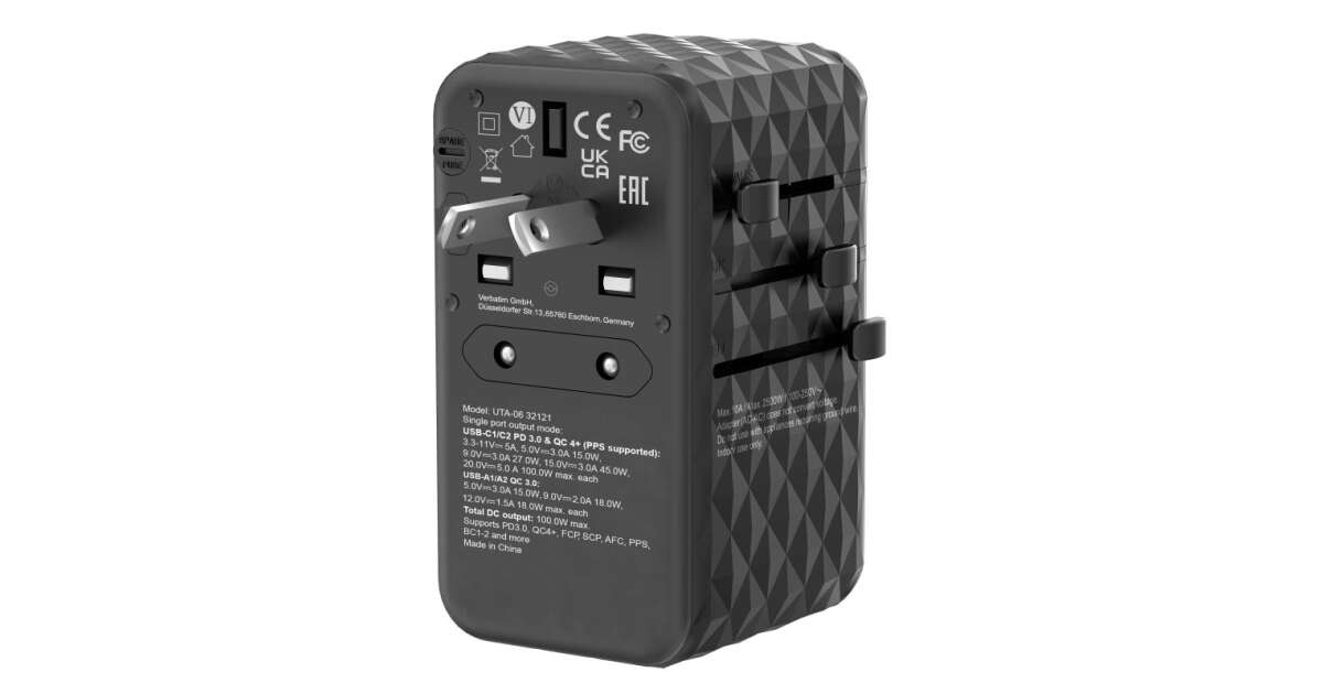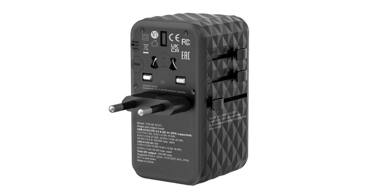 Verbatim Universal Travel Adapter GaN III UTA-06, 2xUSB-C, PD 100W a QC4+/2xUSB-A QC 3.0 Black vásárlás: