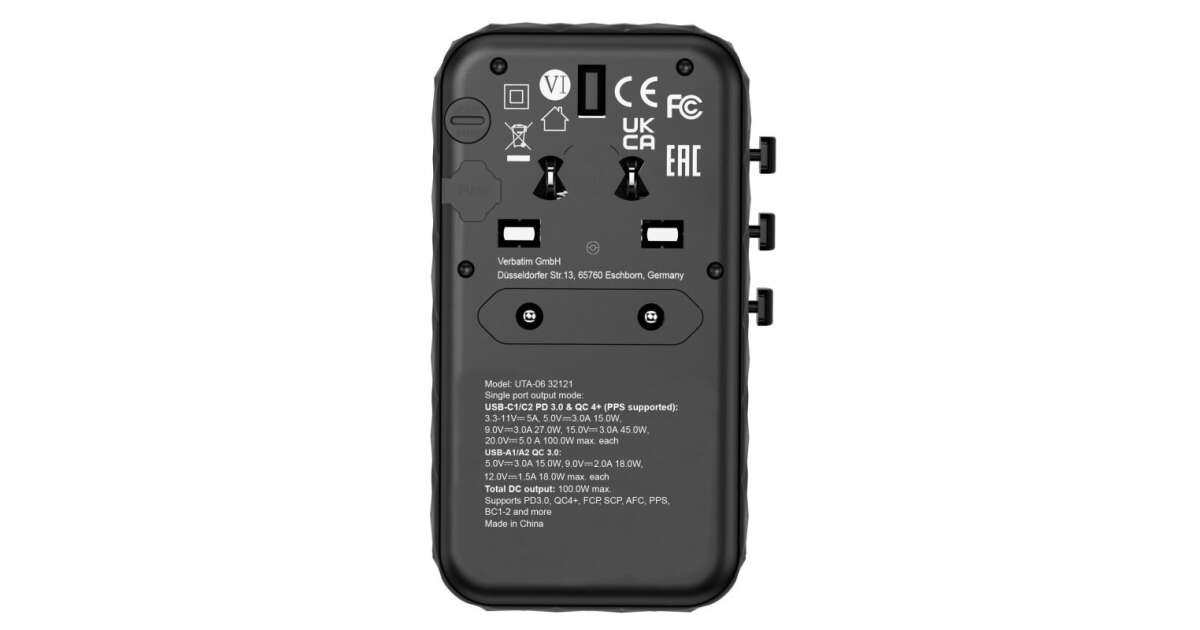 Ezt a terméket így is ismerheted: Verbatim Universal Travel Adapter GaN III UTA-06, 2xUSB-C, PD 100W a QC4+/2xUSB-A QC 3.0 Black