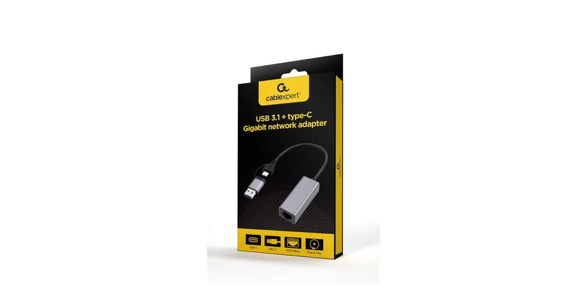 Gembird A-USB3AC-LAN-01 USB 3.1 + type-C Gigabit ne2rk adapter Space Szürke A-USB3AC-LAN-01