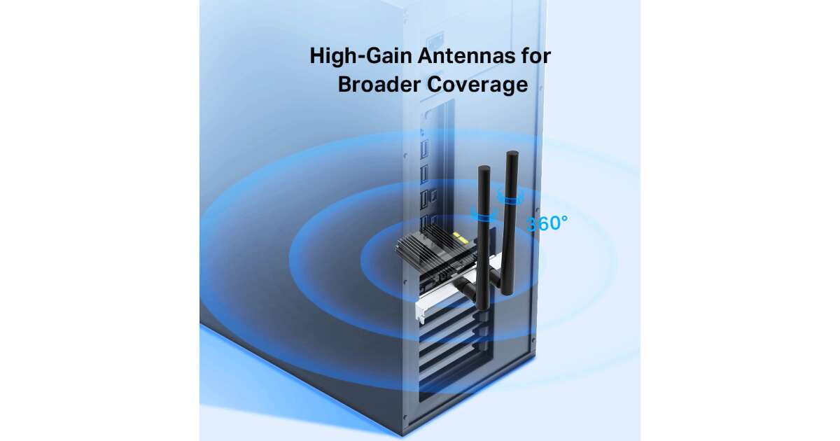 Ez a PCI-Express Wi-Fi 6 adapter hihetetlen sebességet és megbízható kapcsolatot biztosít számítógépéhez. Élvezze a zavartalan streamelést, online játékot és letöltést az AX3000-es sebességnek köszönhetően. A beépített Bluetooth 5.0-val könnyedén csatlakoztathatja kedvenc eszközeit.