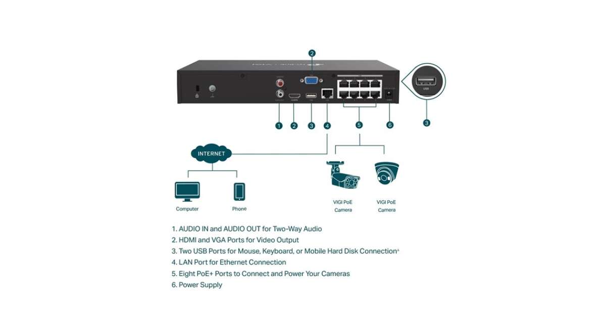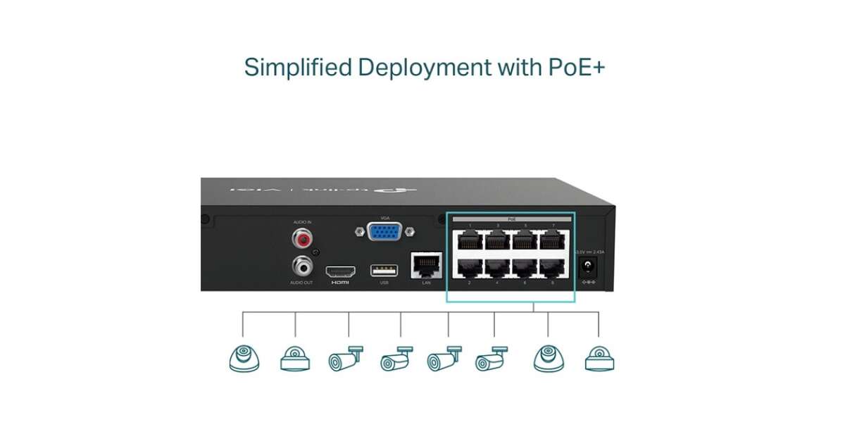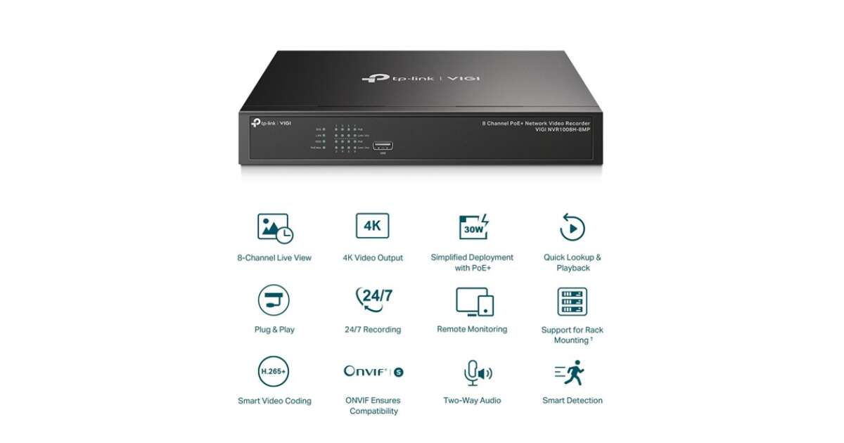 Ezt a terméket így is ismerheted: TP-link NVR rögzítő - VIGI NVR1008H-8MP (8 csatorna, 8 PoE+ port; H265+, 8MP, HDMI, VGA, 2xUSB, 1x Sata(max10TB), audio)