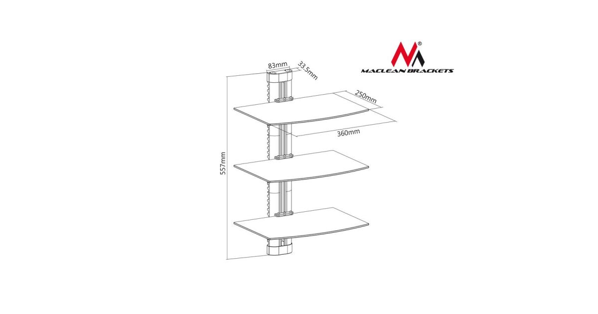Maclean MC-664 360x283.5x557 DVD-PS3-Xbox fali tartó 3-as polc 8 kg üveg - Fekete leírása