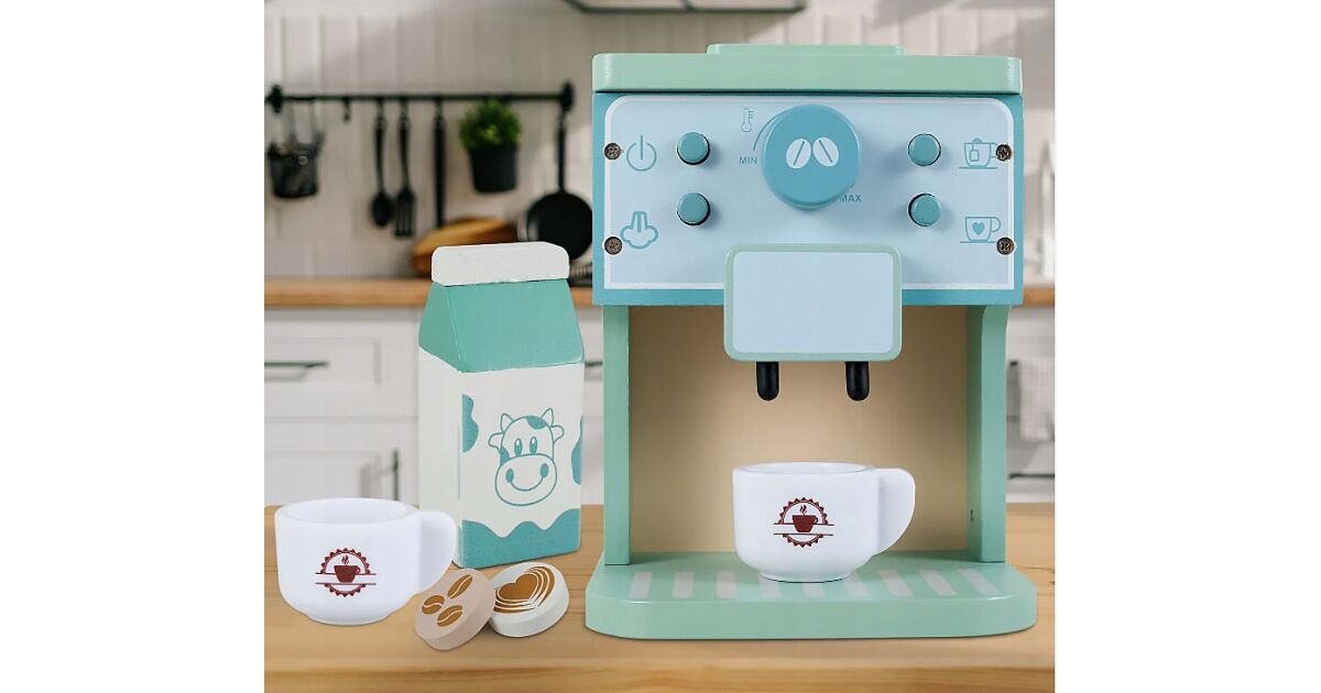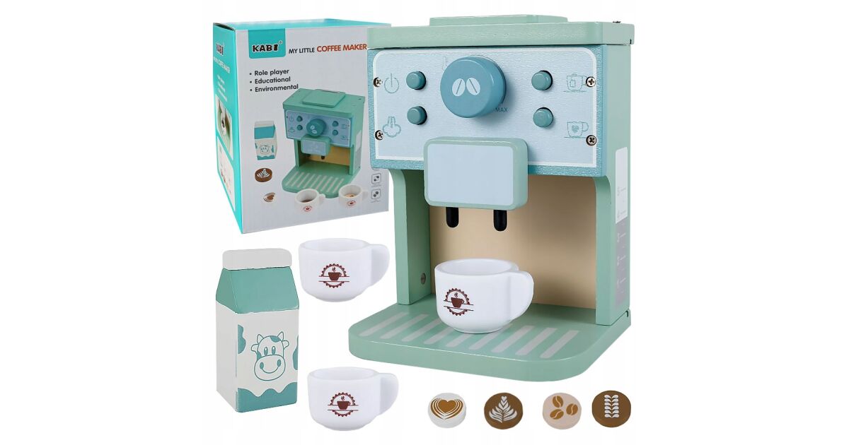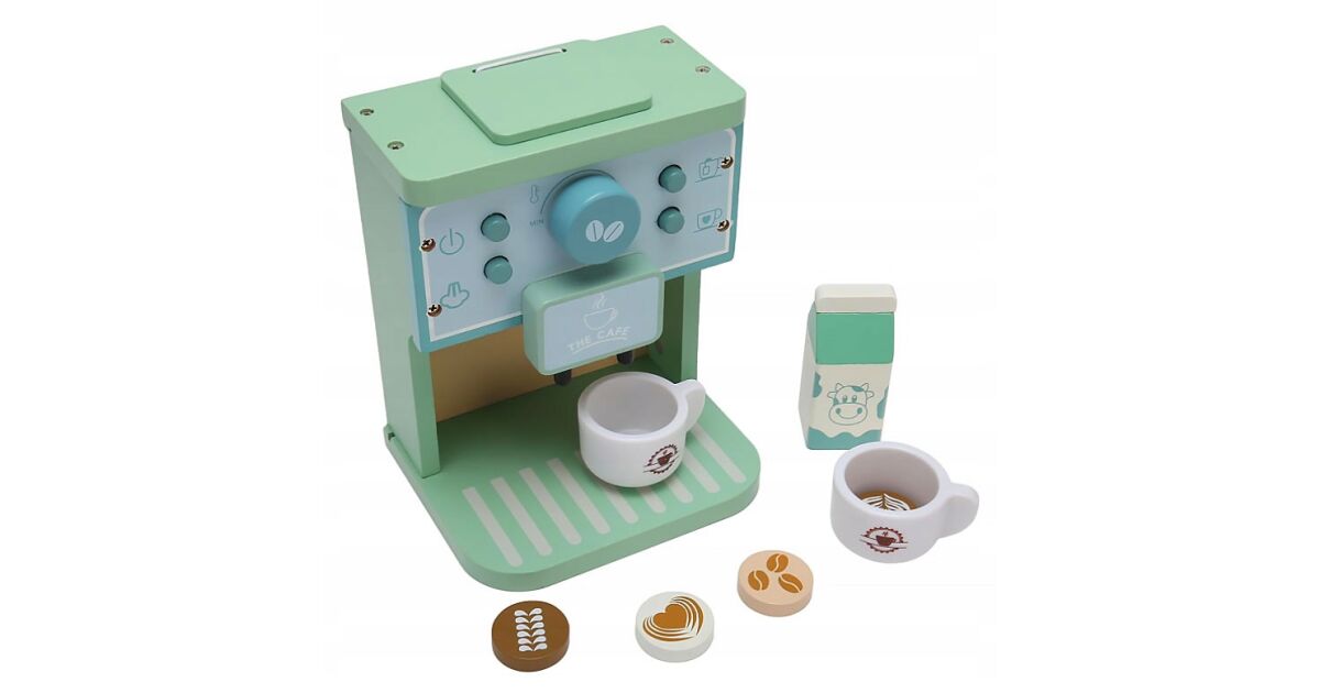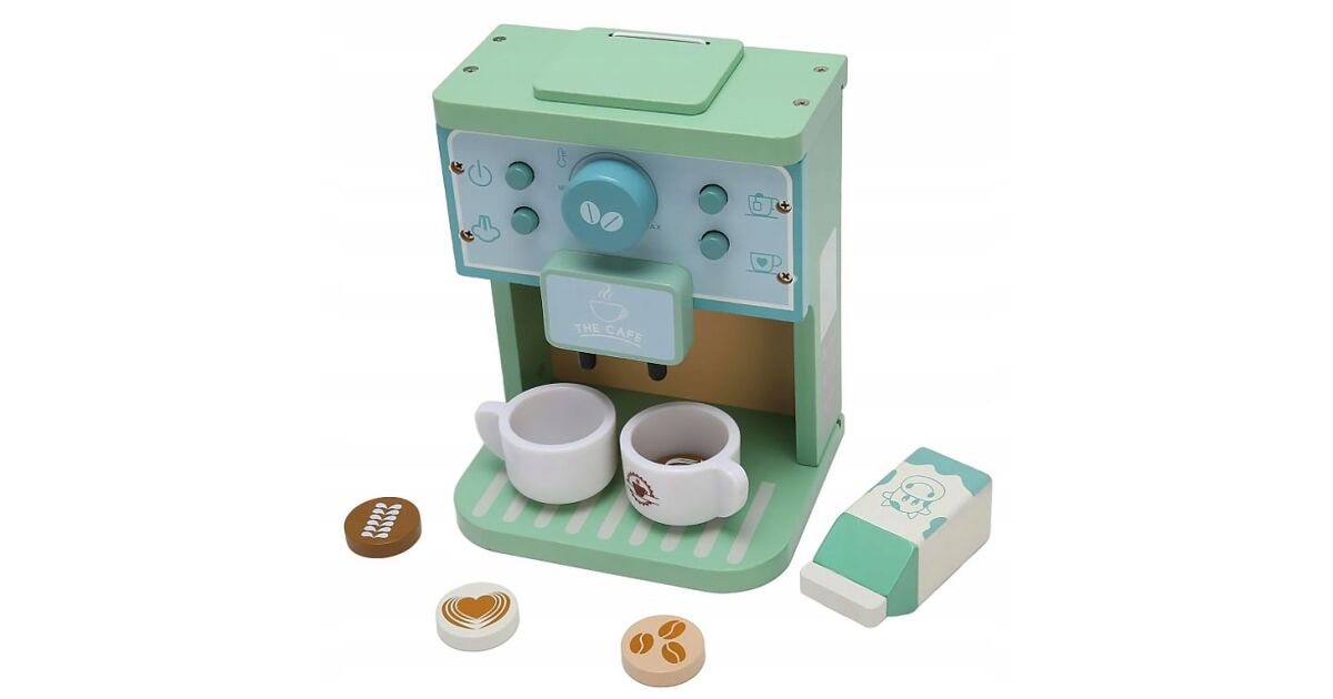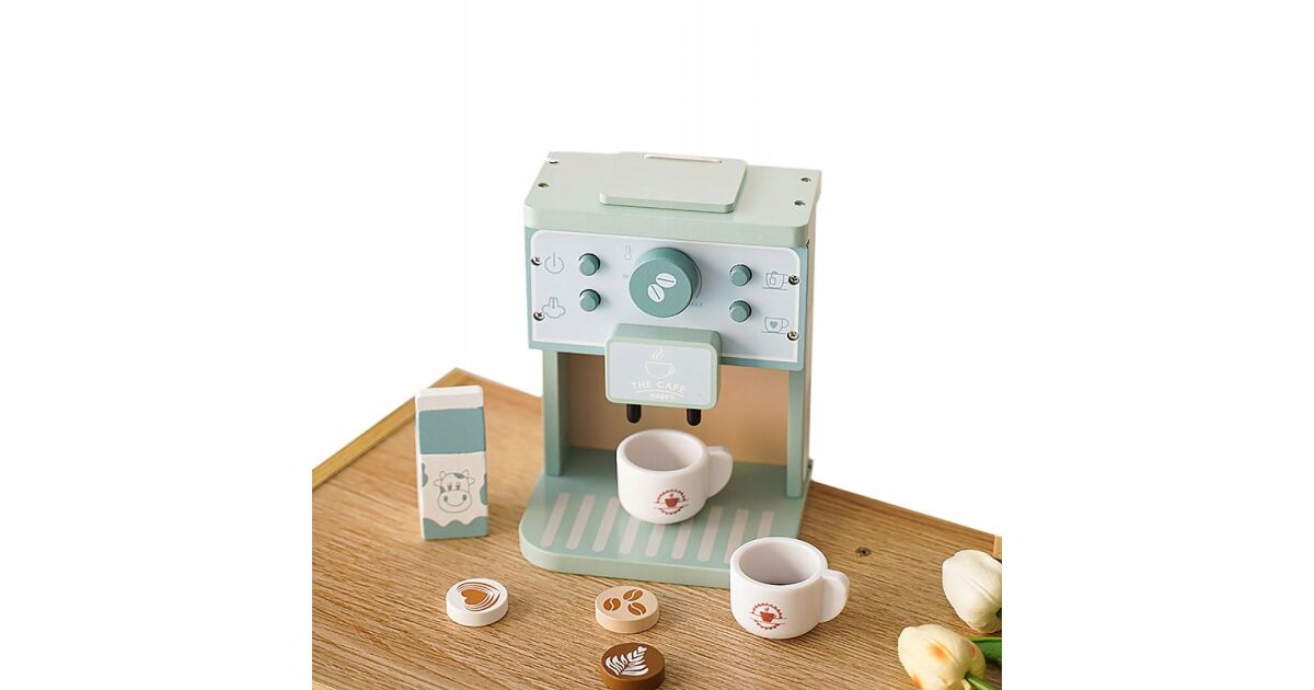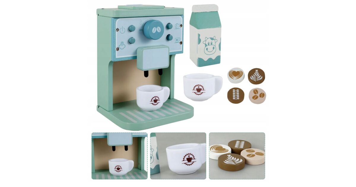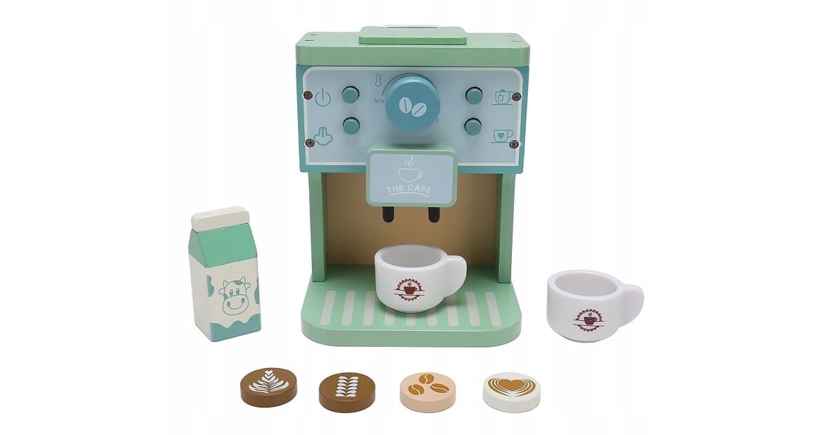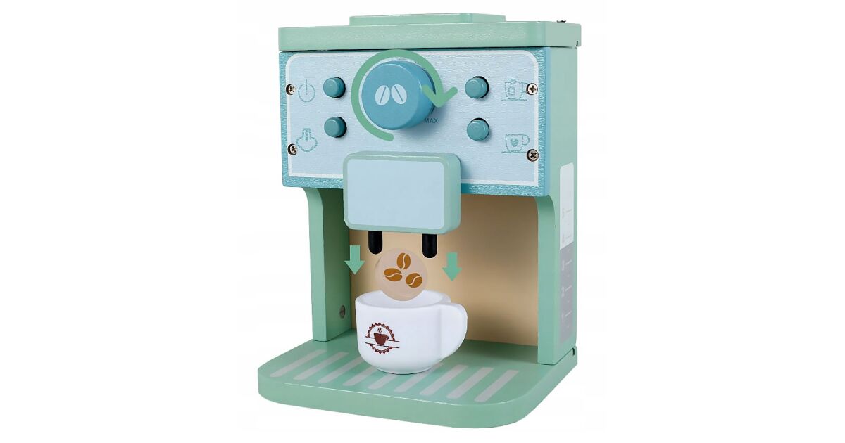 FÁBÓL KÉSZÜLT ESZPRESSZÓGÉP GYEREKEKNEK AUTOMATA KÁVÉFŐZŐ KÁVÉSCSÉSZÉK