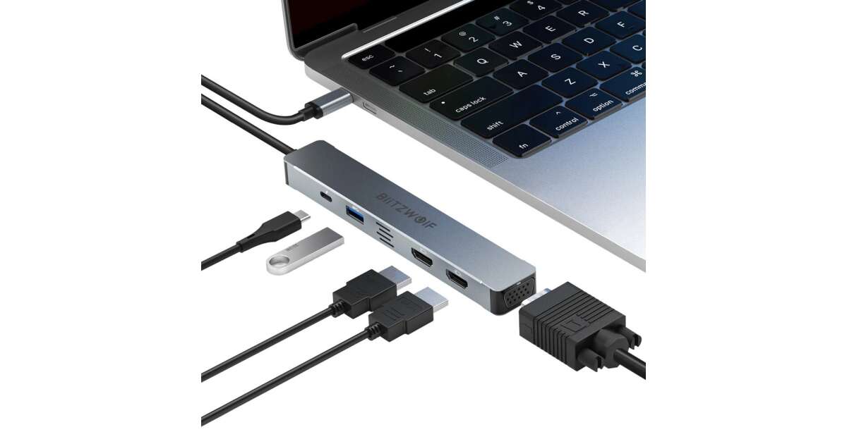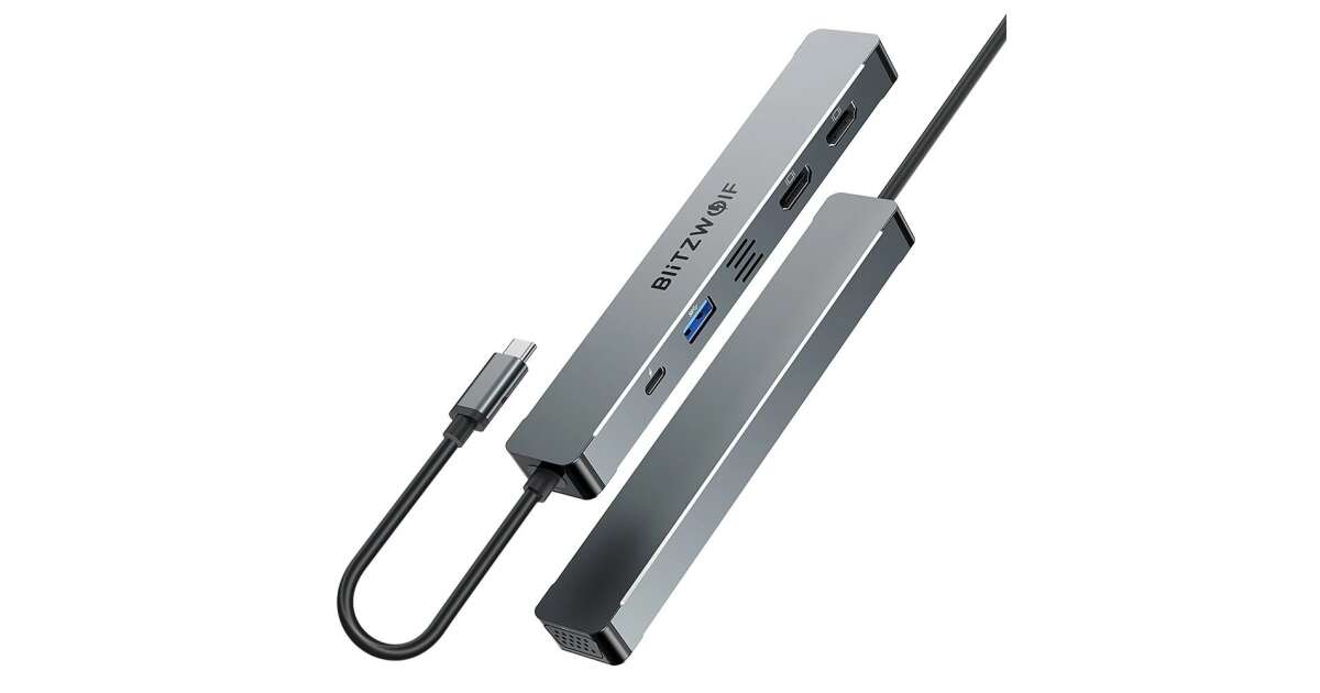 Ezt a terméket így is ismerheted: BlitzWolf BW-NEW-TH11 USB Hub 5 in 1: 2db HDMI port, teljesítmény átvitel: 87W, 1xUSB-A 3.0, VGA port