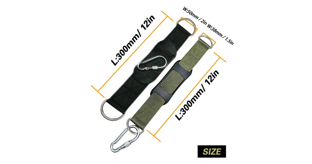 - Anyag: Nagy teherbírású poliészter heveder, rozsdamentes acél karabinerek
