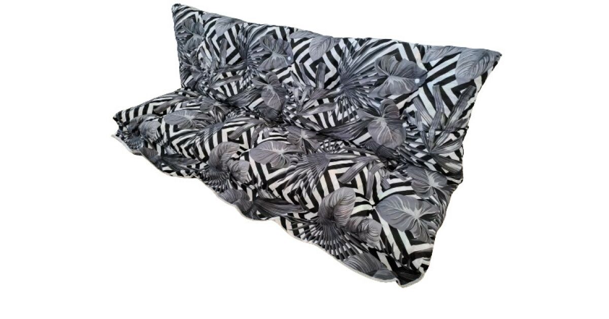 Hintaágy párna 130 cm 2 részes fekete csíkos szürkéskék leveles mintával leírása