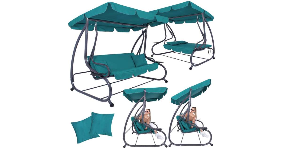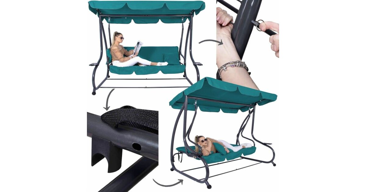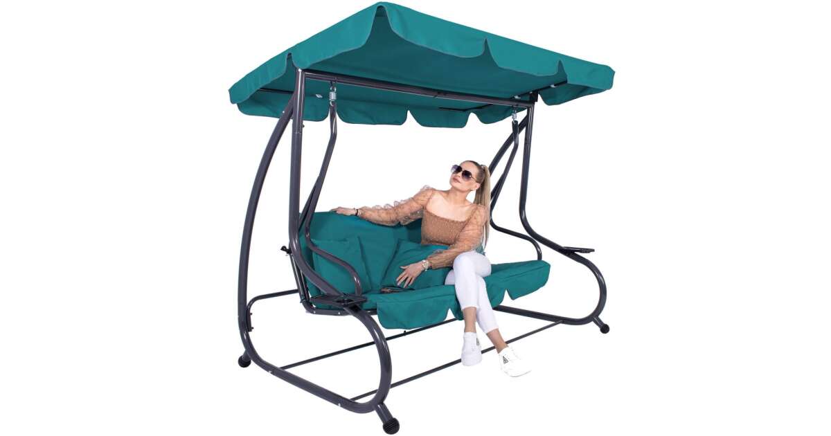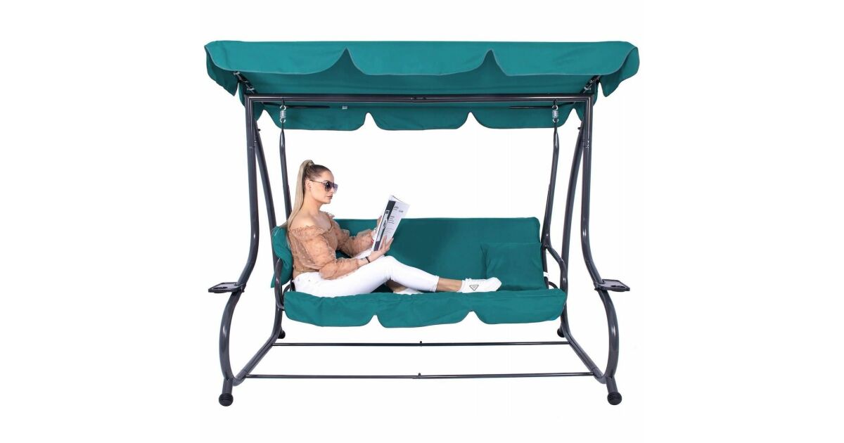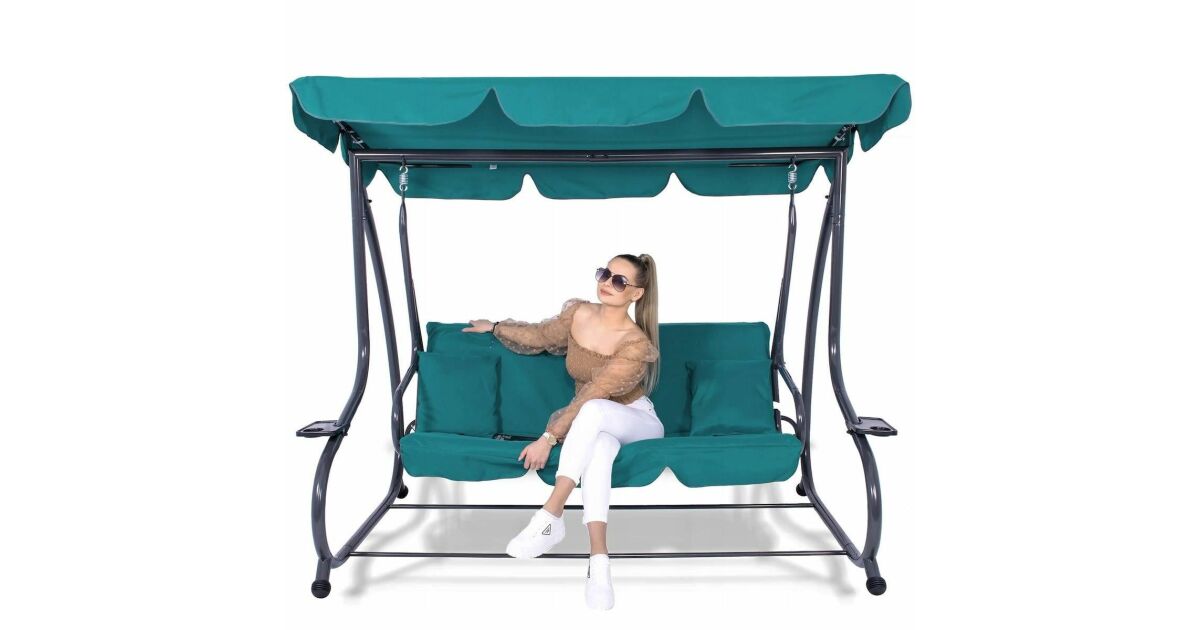 Ha már nagyon várja az idei tavaszt és nyarat, mindenképp jó ha van otthon egy kerti hintaágy. A hintaágynak köszönhetően nagyszerű helyé varázsolja teraszát, kertjét, és lehetőséget ad a kényelmes pihenésre. A kert az a hely, ahol a természetben pihenhet. Ezért valóban érdemes megfelelő és kényelmes bútorokkal felszerelni. Az általunk kínált háromszemélyes kerti hinta lehetővé teszi, hogy egy fárasztó nap után a friss levegőn lazítson. A kanapé ebben a szezonban divatos türkiz színű, puha, anyaggal díszített párnákkal rendelkezik. Stabil szerkezete garantálja a biztonságos használatot, az állítható napellenző pedig tökéletesen véd a nap ellen. A hintakeret vastag, strapabíró csövekből készül. A lábak végén csúszásgátló elemek találhatók, amelyek emellett stabilizálják a bútort. A hintát akár 3 fő is használhatja egyszerre, mert maximális teherbírása akár 280 kg is lehet. A hintánk megvásárlásakor a következő termékeket kapja meg: - tartós porszórt acél keret;