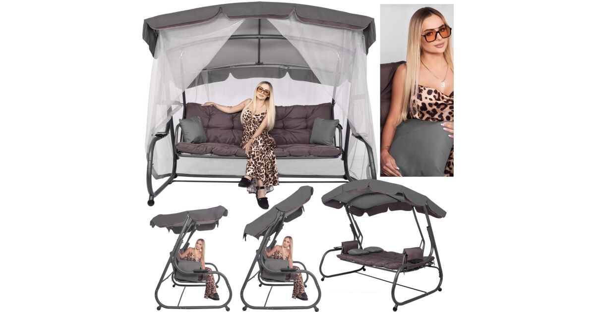 3 személyes kerti hintaágy szúnyoghálóval: Pihenés a szabadban ☀️