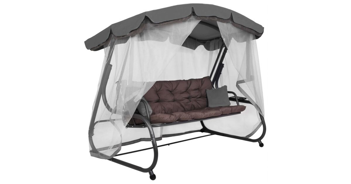 Springos Kerti hintaágy (kanapé funkcióval) szúnyoghálóval, acélrácsos 3 személyes, barna és szürke