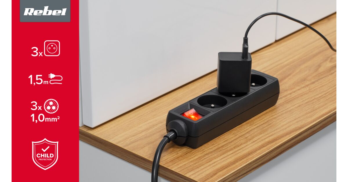 Ez a Rebel hosszabbító kábel tökéletes megoldás otthoni és irodai használatra is, hogy mindig legyen elég konnektor a szükséges eszközök számára. A kapcsolóval ellátott elosztóval könnyedén be- és kikapcsolhatod az eszközeidet, a gyermekvédelem pedig extra biztonságot nyújt.