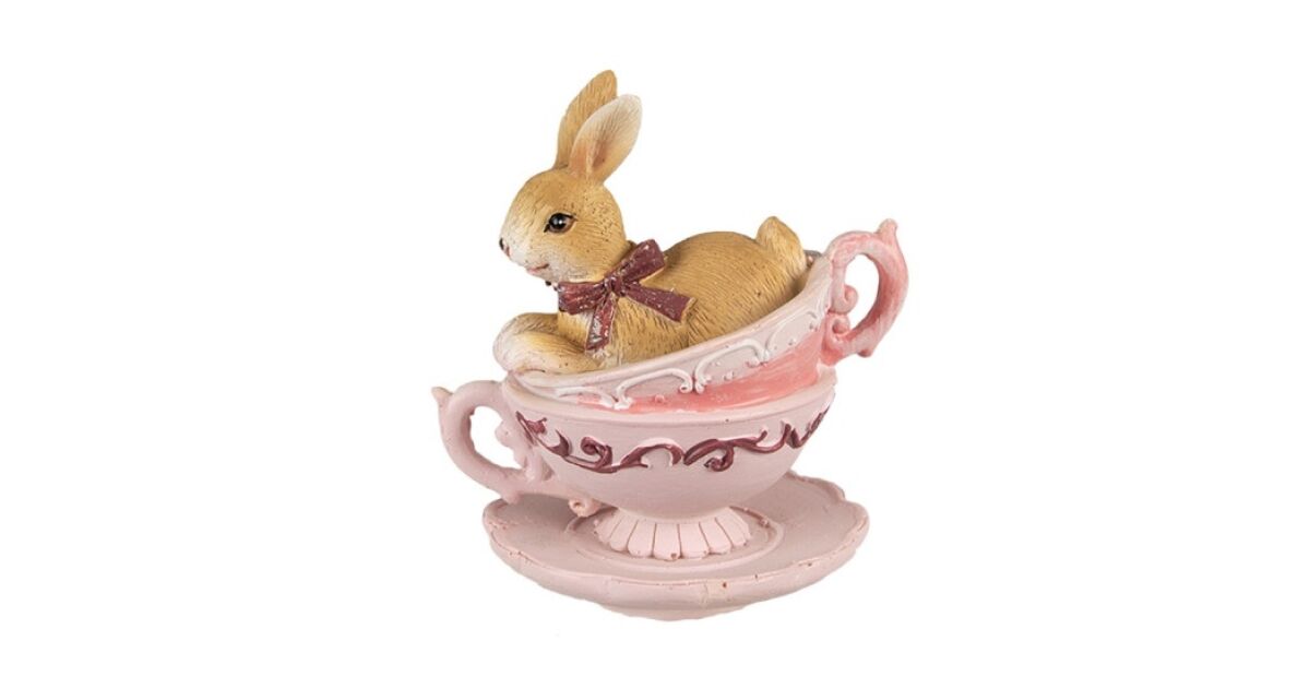CLEEF.6PR4986 Nyuszi 2 rózsaszín csészében, 9x7x9cm, műanyag dekoefigura vélemények