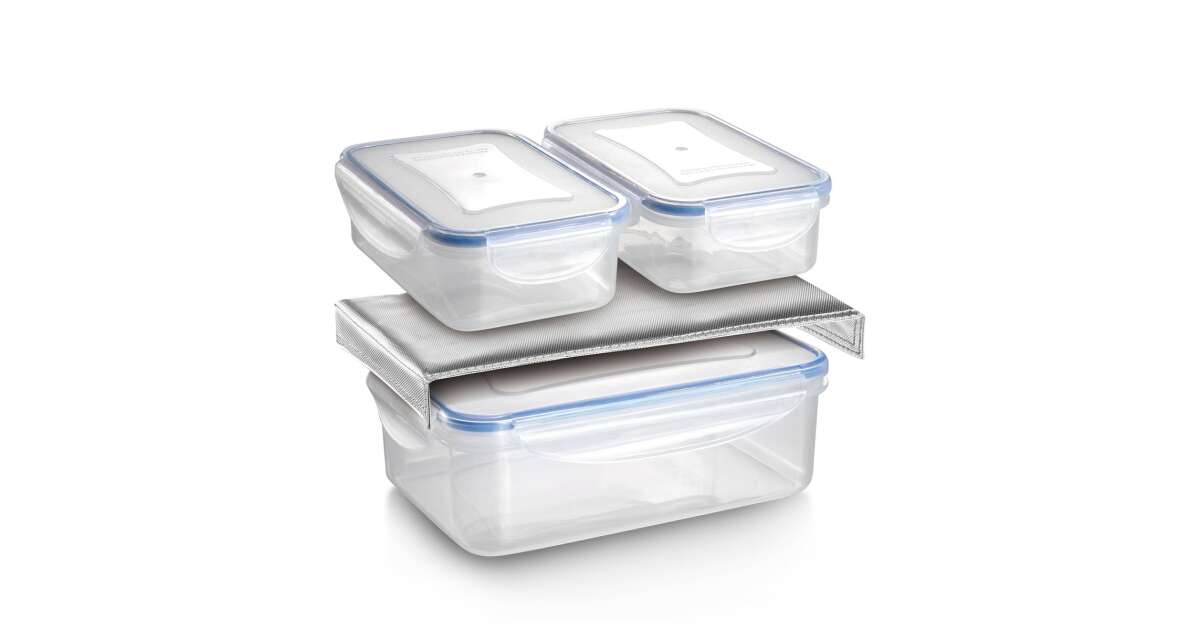 Ez a praktikus FRESHBOX hőmérséklet-tartó táska 3 db vízálló műanyag dobozzal együtt tökéletes választás az ebéd vagy uzsonna biztonságos és kényelmes szállításához. A szilikon tömítésű dobozok megőrzik az ételek hőmérsékletét, így az étel mindig friss és finom marad. A táska strapabíró poliészter anyagból készült, így hosszú ideig hűséges társad lesz.