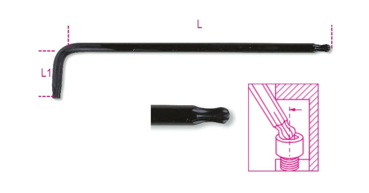 97BTxL mm Hajlított bitkulcs egyik vége gömbölyű, hosszú kivitel Torx® csavarokhoz leírása