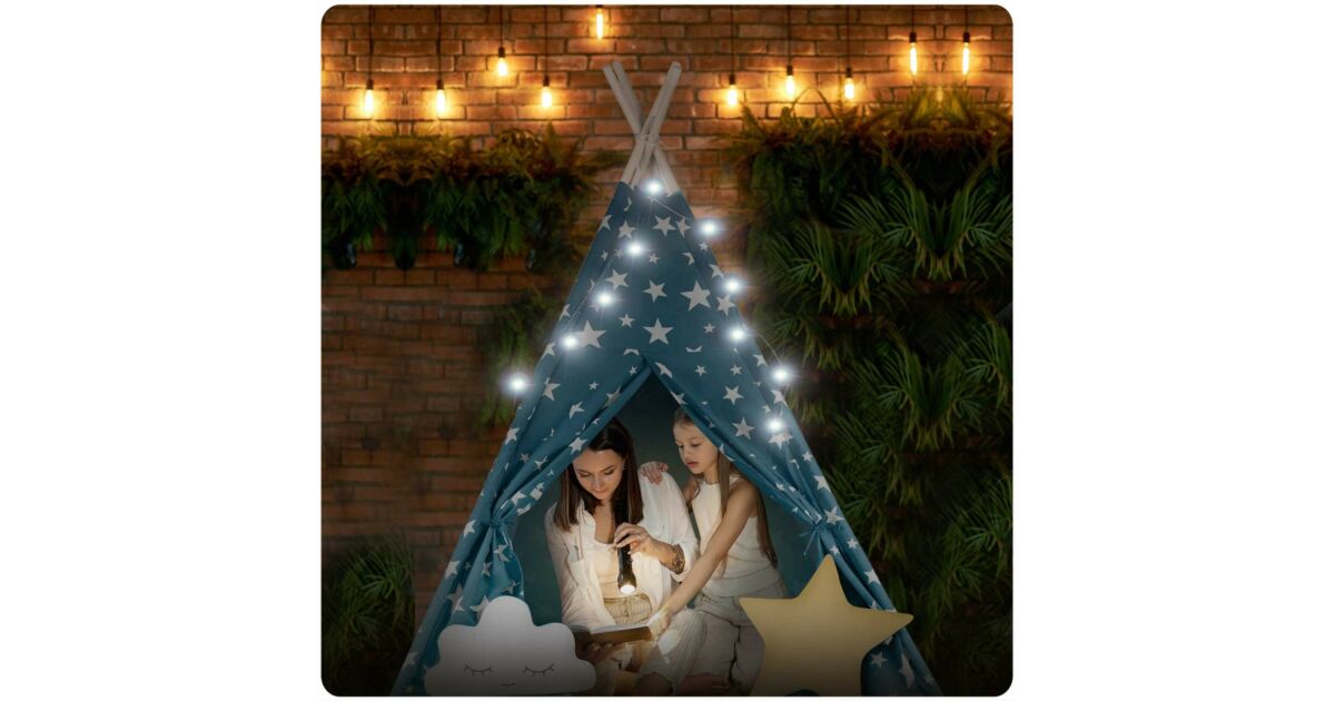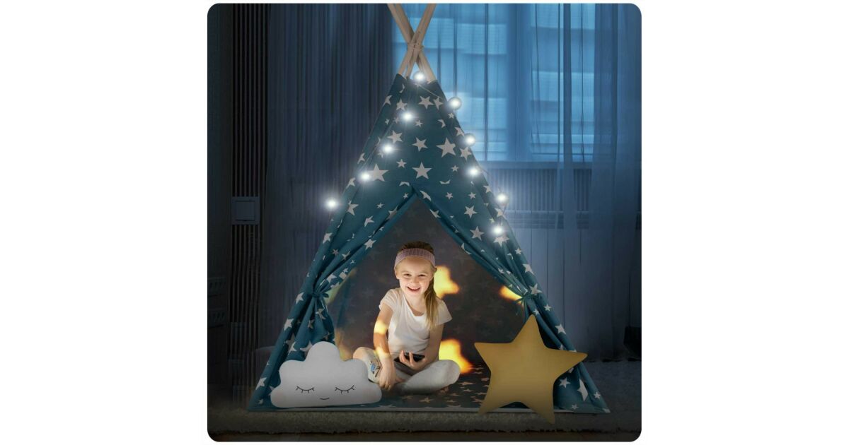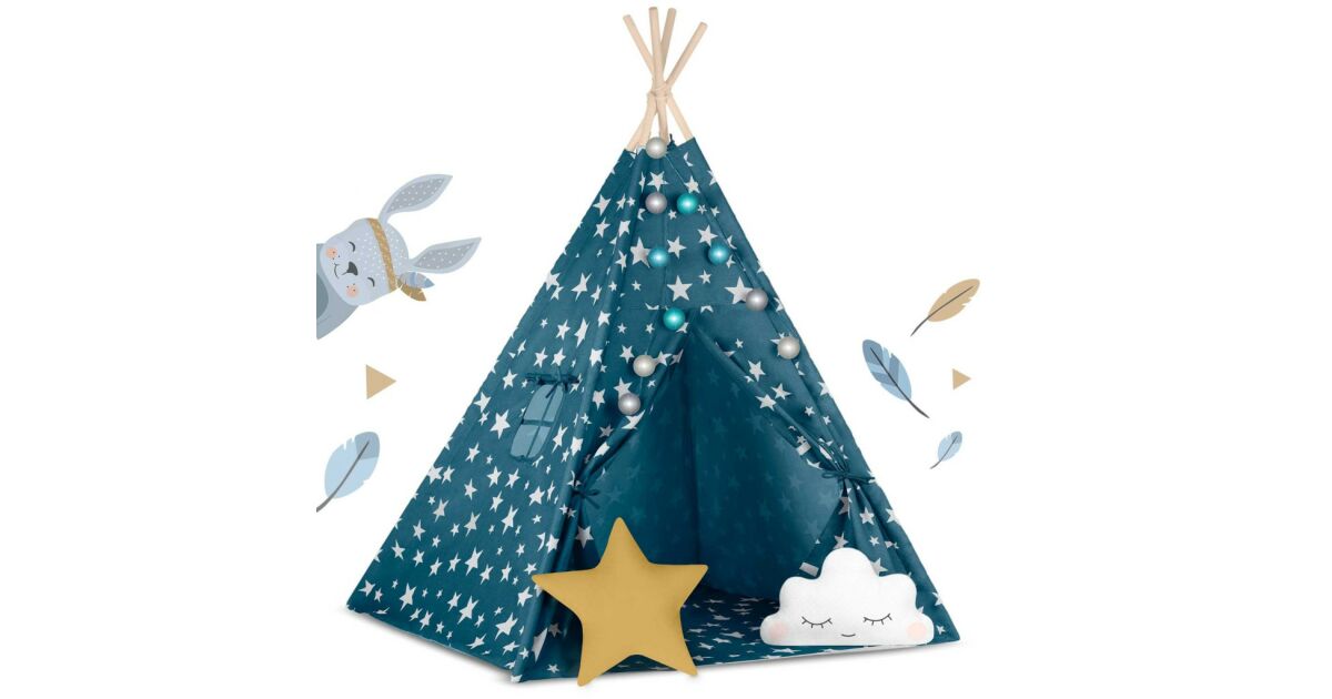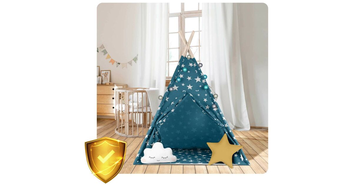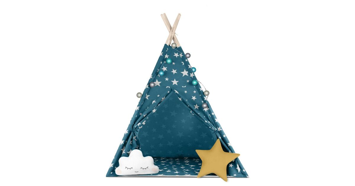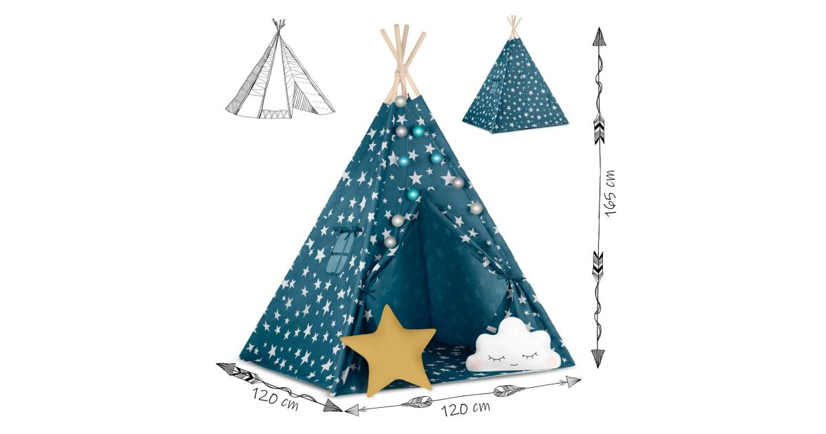 Ezt a terméket így is ismerheted: Nukido Indián sátor fényfüzérrel + ajándék kiegészítőkkel - Csillag - Kék