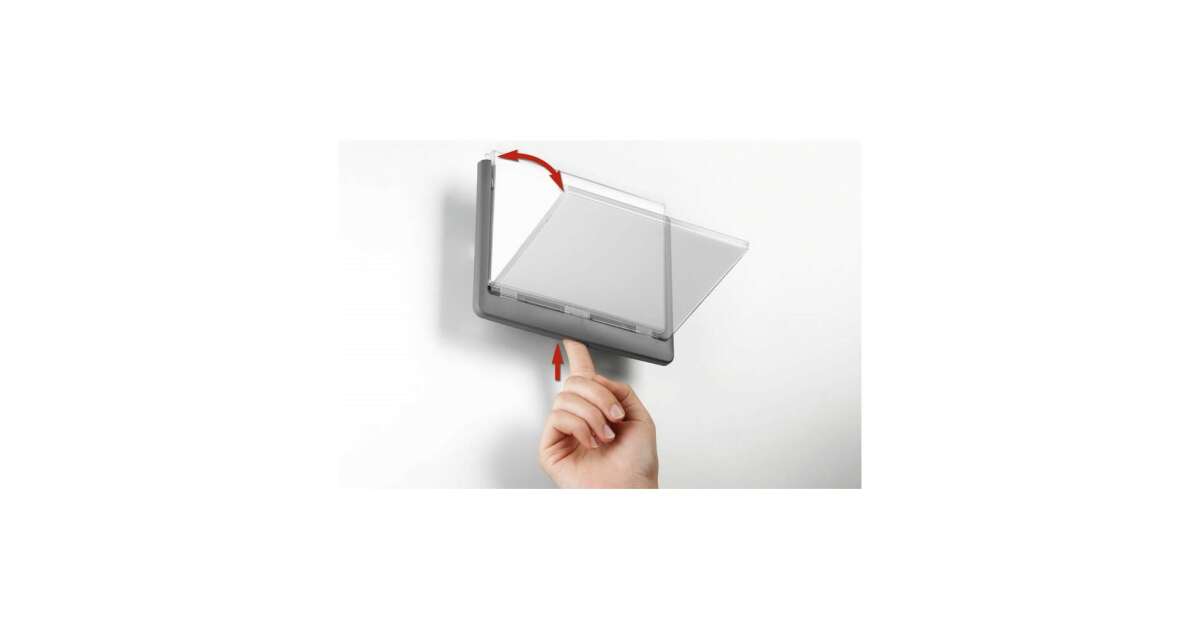 Ez a modern, lekerekített sarkú információs tábla ideális megoldás hotelekbe, konferenciatermekbe és minden olyan helyre, ahol az információkat gyakran kell cserélni. A könnyen cserélhető betétlapoknak köszönhetően mindig naprakész információkat jeleníthet meg. A tábla egyszerűen rögzíthető csavarokkal vagy öntapadó koronggal.