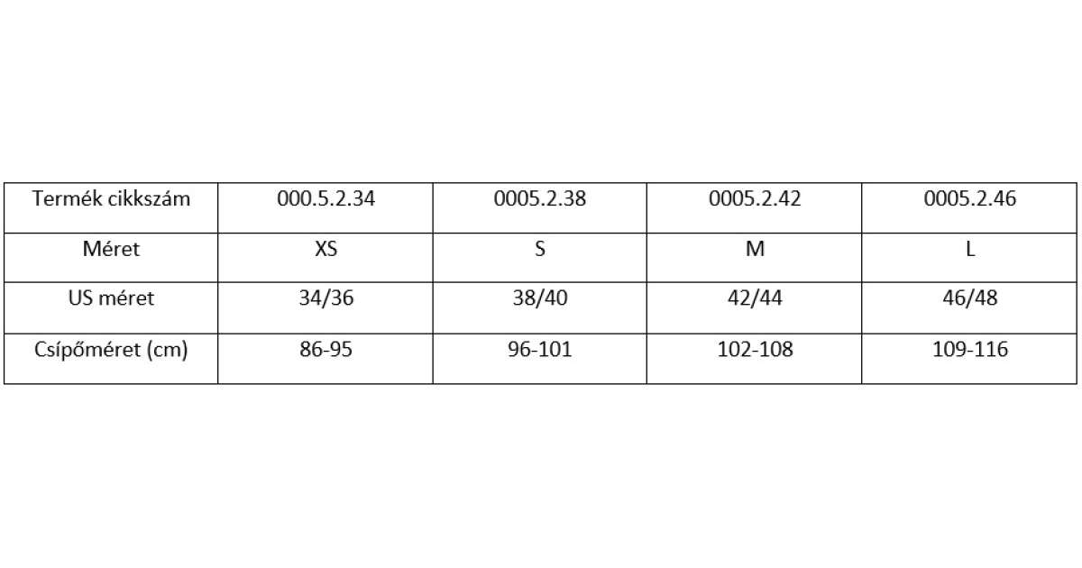 Segítségül a megfelelő méretű fehérnemű kiválasztásához csatoltunk egy táblázatot, amely centiméterben tartalmazza az egyes méretek csípőnagyságát. A megfelelő méret kiválasztásához a csípőt szükséges lemérni, majd egyeztetni a táblázatban megadott adatokkal. Ennek elmulasztásából adódó méretproblémák esetén a fehérneműt a szállítási díj megtérítése ellenében tudjuk csak cserélni.