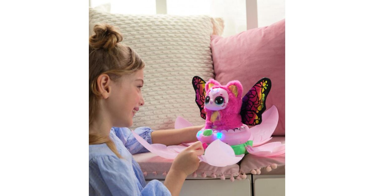Éld át a csodát, ahogy a Hatchimals Alive Bloom Surprise Kittyfly kibújik a virágból! Ez a tündéri, félig cica, félig pillangó lény interaktív módon reagál az érintésedre és a szeretetedre. Figyeld, ahogy hangokkal és fényekkel válaszol, és tanítsd meg "repülni" finom mozdulatokkal! ✨