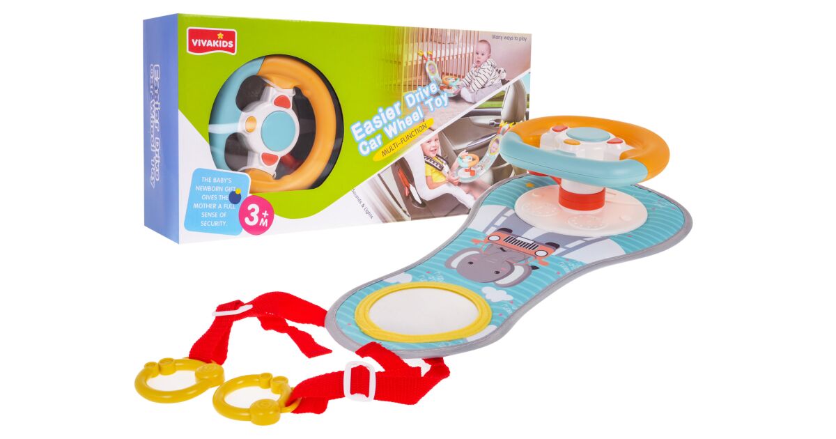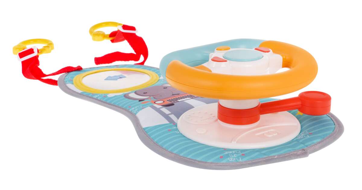Ez az interaktív autós kormány tökéletes szórakozást nyújt a 3 hónapos kortól kezdve az autóban utazó gyermekeknek. A kisgyermekek igazi sofőrként érezhetik magukat, miközben utánozzák szüleik mozdulatait. A játék fejleszti a gyermek érzékszerveit hangok és fények segítségével, és egy praktikus tükröt is tartalmaz.