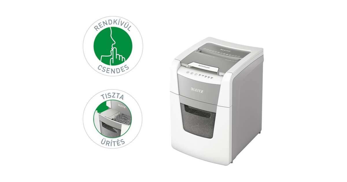Ez a teljesen automata LEITZ iratmegsemmisítő tökéletes választás otthoni vagy kis irodai használatra. A nagy kapacitású adagoló és a 34 literes hulladéktartálynak köszönhetően egyszerre akár 100 A4-es lapot is megsemmisíthet. A DIN P4 biztonsági szintű konfetti vágás garantálja az adatok védelmét.
