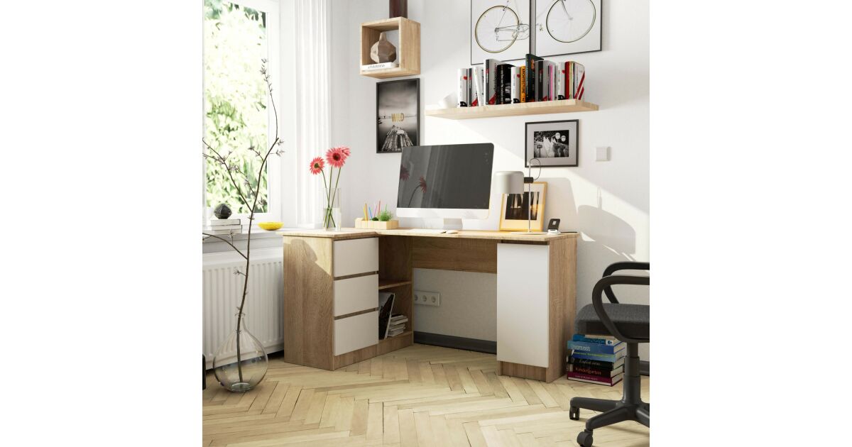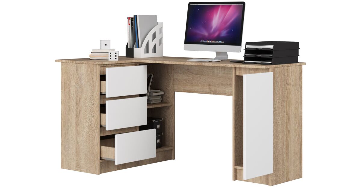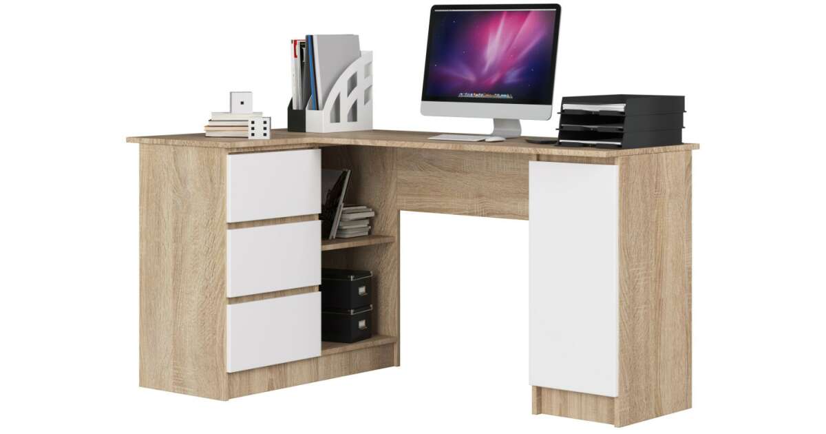 Ezt a terméket így is ismerheted: Akord Sarokíróasztal B20 Balos, 155 cm, Sonoma Tölgy/Fehér, 3 Fiók, Laminált Lemez, ABS Élzárás, Összeszerelhető, Modern Stílus