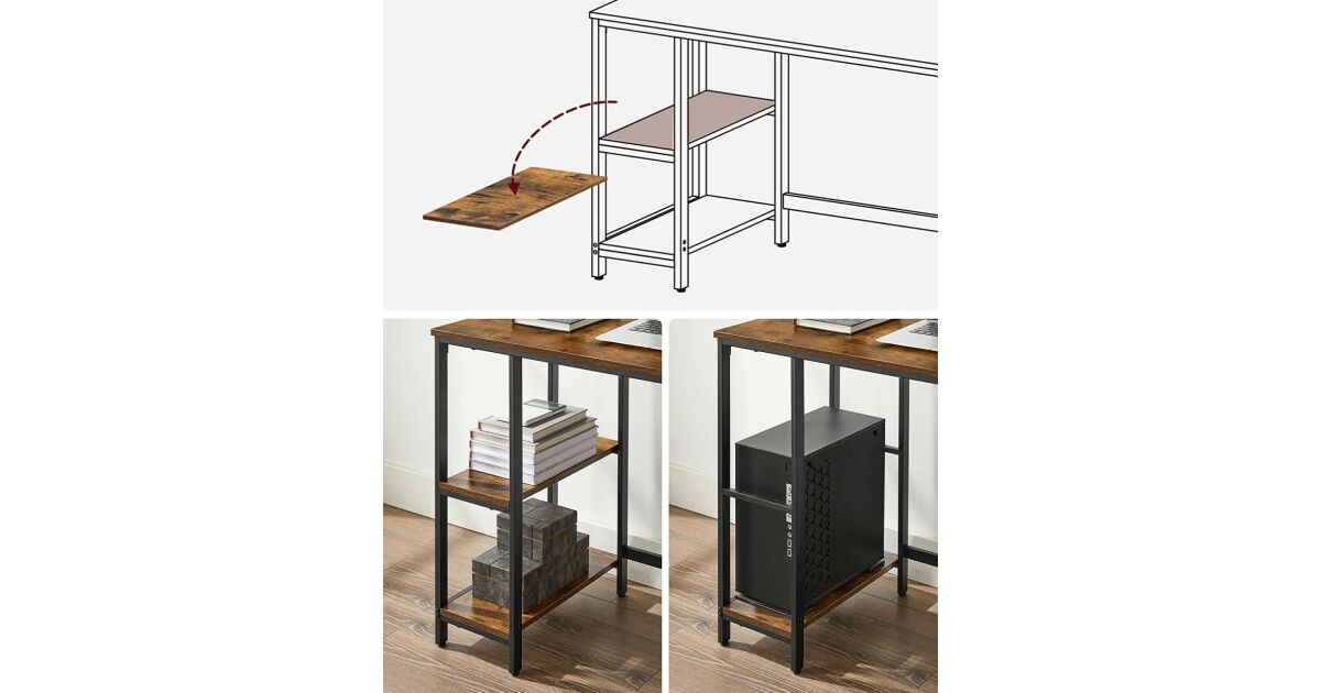 Íróasztal tárolóval, számítógép asztal, 2 megfordítható polc, munkaállomás, nappali, acélváz, ipari stílusú, rusztikus barna és fekete LWD046B01 vásárlás:
