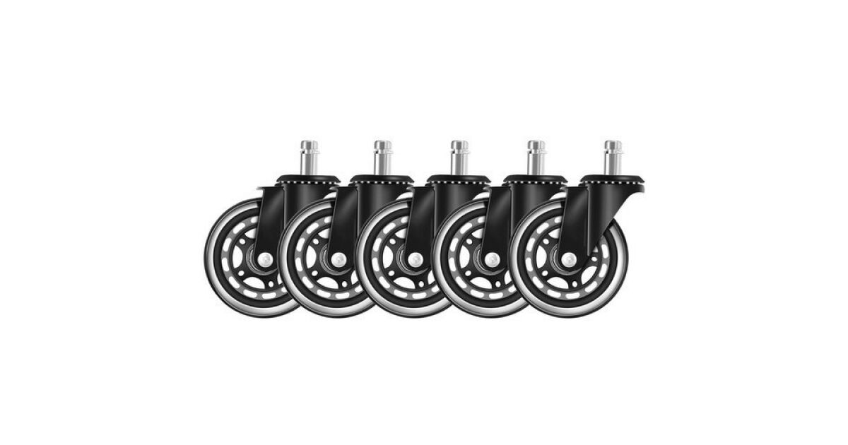 Könnyen cserélhető, csendes és sima futású kerekek irodai székhez, játék székhez, vagy bármilyen forgószékhez. A gumírozott felület megvédi a padlót a karcolásoktól és a kopástól, miközben biztosítja a kényelmes és stabil mozgást. A beépítés egyszerű és gyors, csak nyomja be a kerekeket a székbe! 🚀