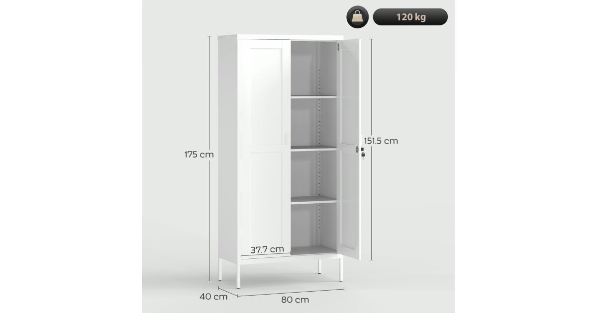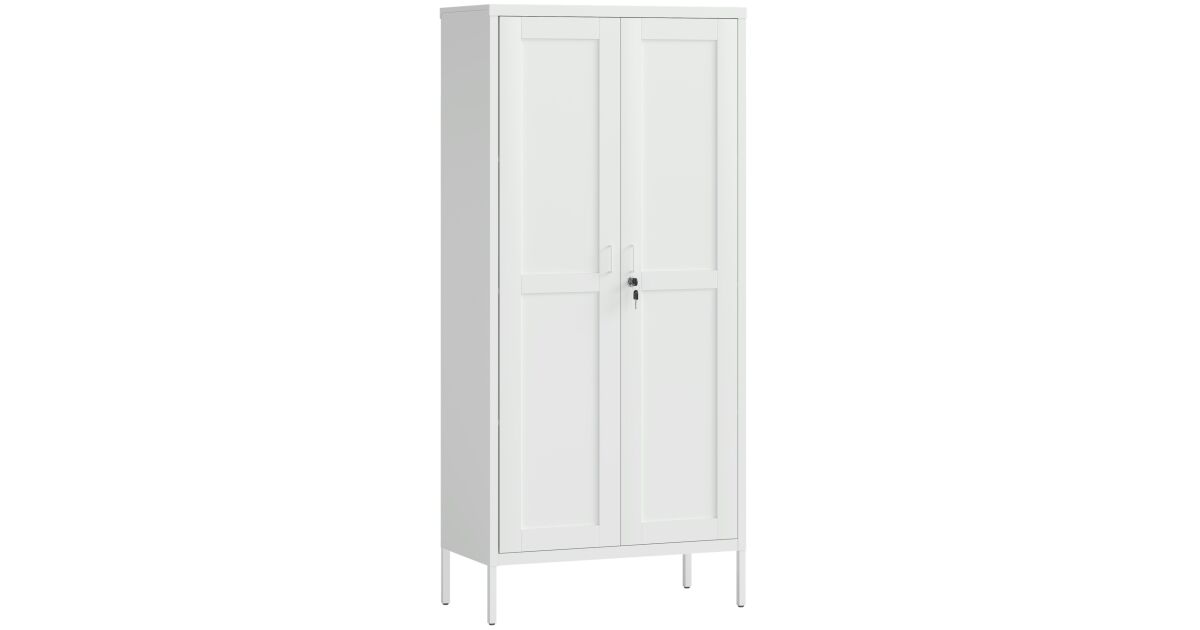 HOMCOM 2 ajtós acél irattartó szekrény, irodai irattartó szekrény állítható polcokkal és zárral, többcélú tárolószekrény, irodába, dolgozószobába, otthonra, 80x40x175 cm, fehér leírása