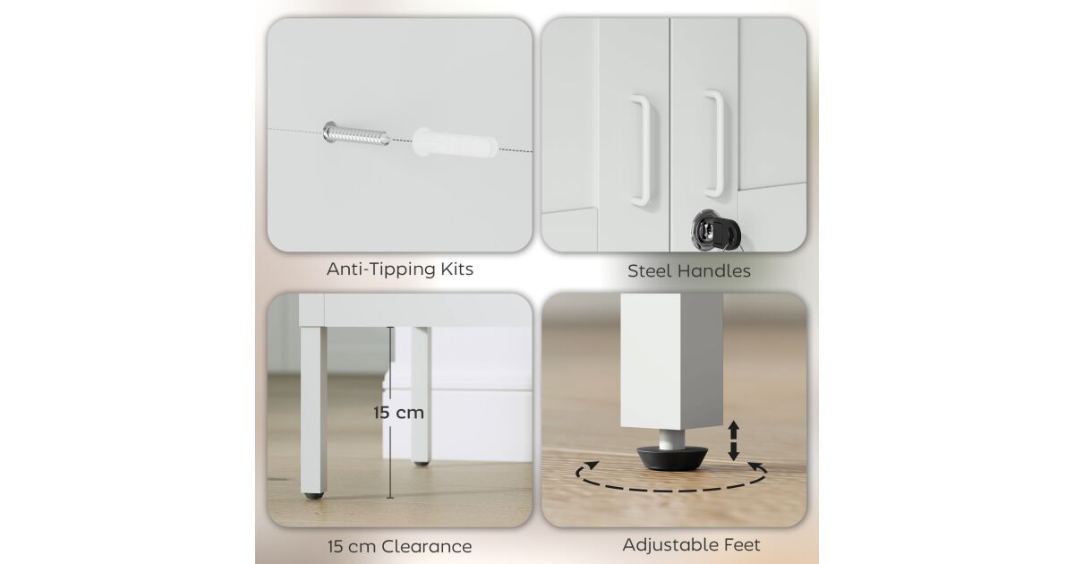 - 🛡️ Stabilitás és biztonság: Borulásgátlóval és állítható lábakkal rendelkezik a maximális biztonság érdekében.