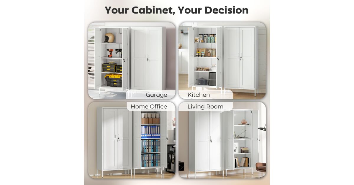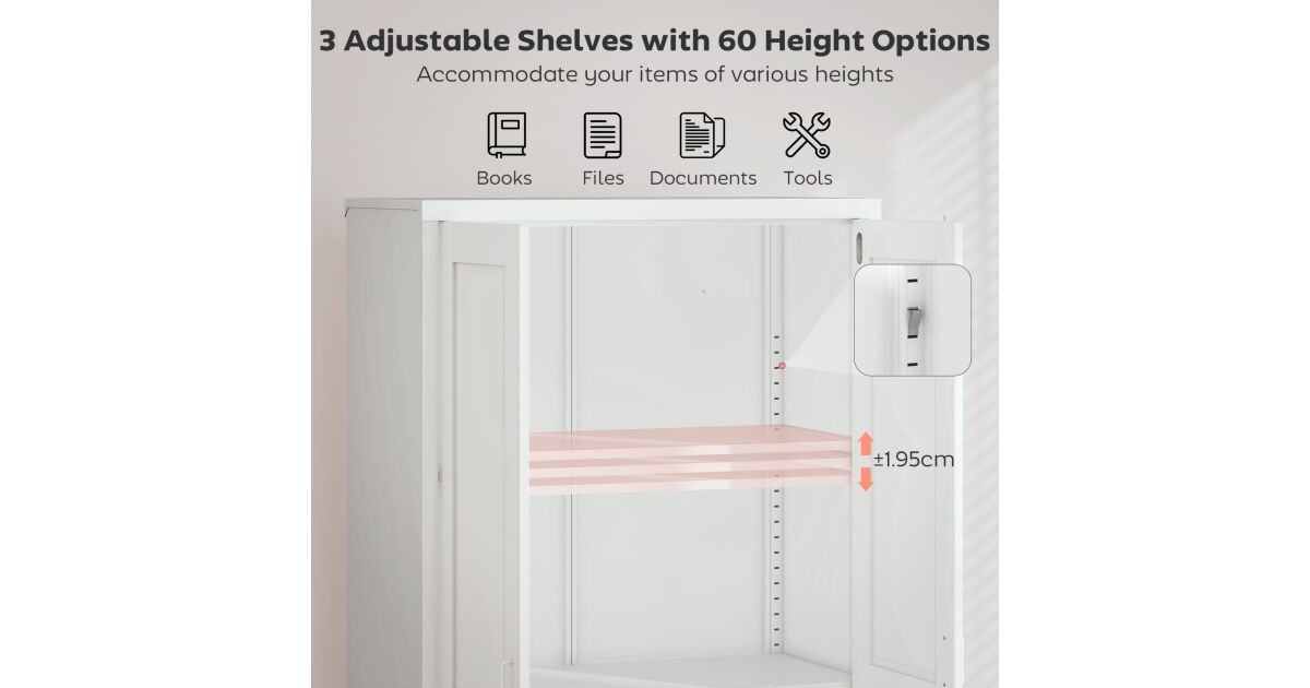 A HOMCOM irattartó szekrény ideális megoldás irodája vagy otthona rendszerezésére. Masszív acélszerkezetének és állítható polcainak köszönhetően minden igényt kielégít, miközben modern stílusával bármely helyiségbe illeszkedik.