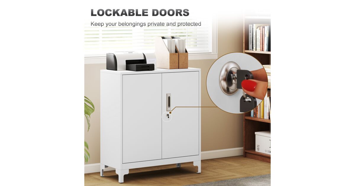 HOMCOM Irodabútor 3 polccal, 2 ajtóval és kulccsal, 80x35x91 cm, Fehér leírása