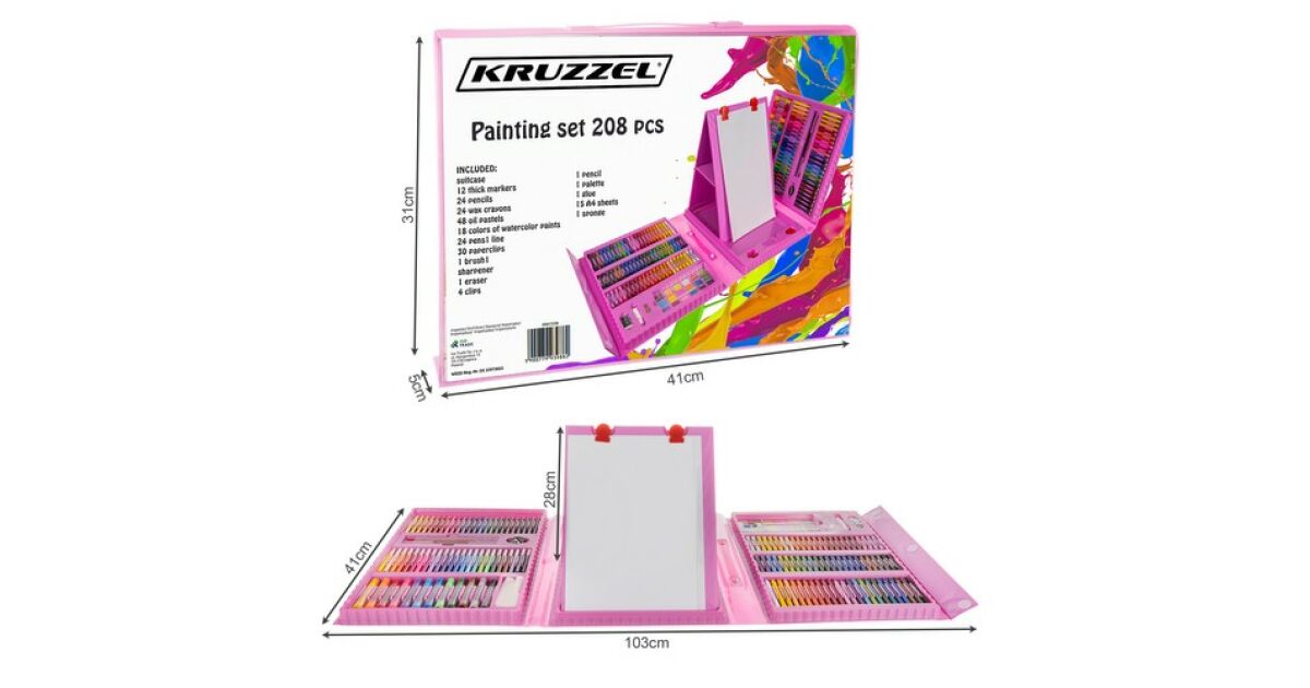 Művész készlet rózsaszín táskában, 208 db-os leírása
