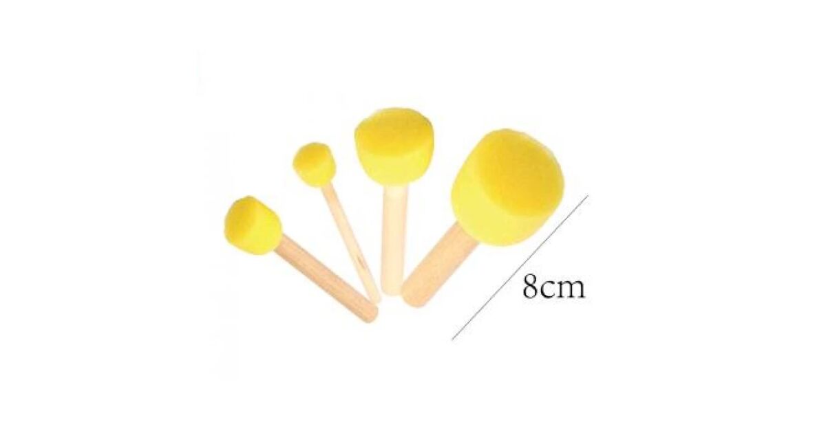 Szivacsecset készlet - 4 db, Sárga, Kerek, Fa nyéllel - Festéshez, Kreatívkodáshoz