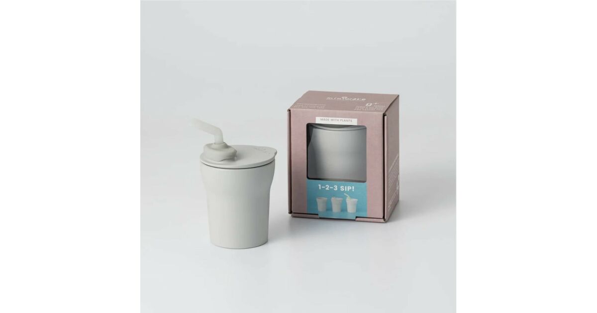 Miniware 1-2-3 Sip! csésze tetővel és baba edzőszalmával, 100% biológiailag lebomló, természetes anyagokból, Szürke