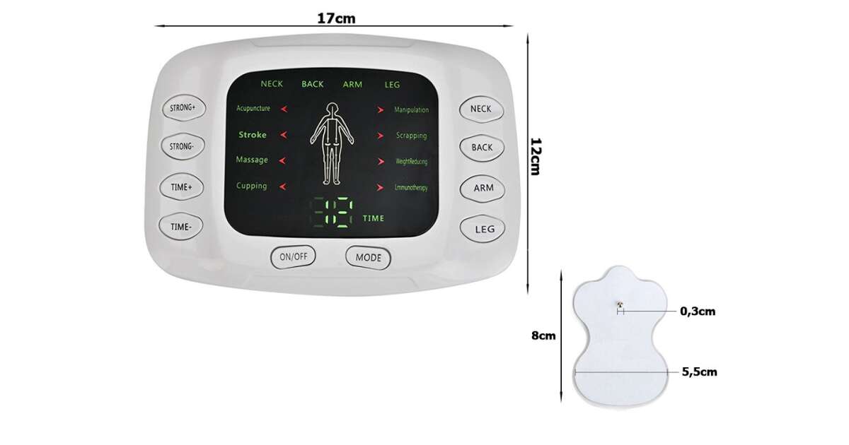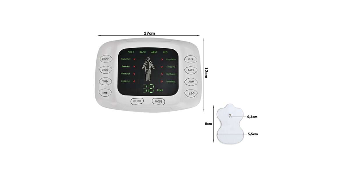 Ez az EMS TENS elektrostimulátor hatékonyan segít az izomfájdalmak enyhítésében, az izmok regenerációjában és a testápolásban. 8 különböző masszázsprogrammal rendelkezik, amelyeket a nyak, hát, kar és láb izmaira egyaránt alkalmazhat.
