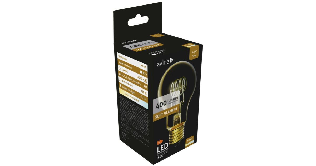 Avide soft filament LED izzó E27 4,5W 400lm 2700K A60 ABLSFG27EW-4.5W leírása