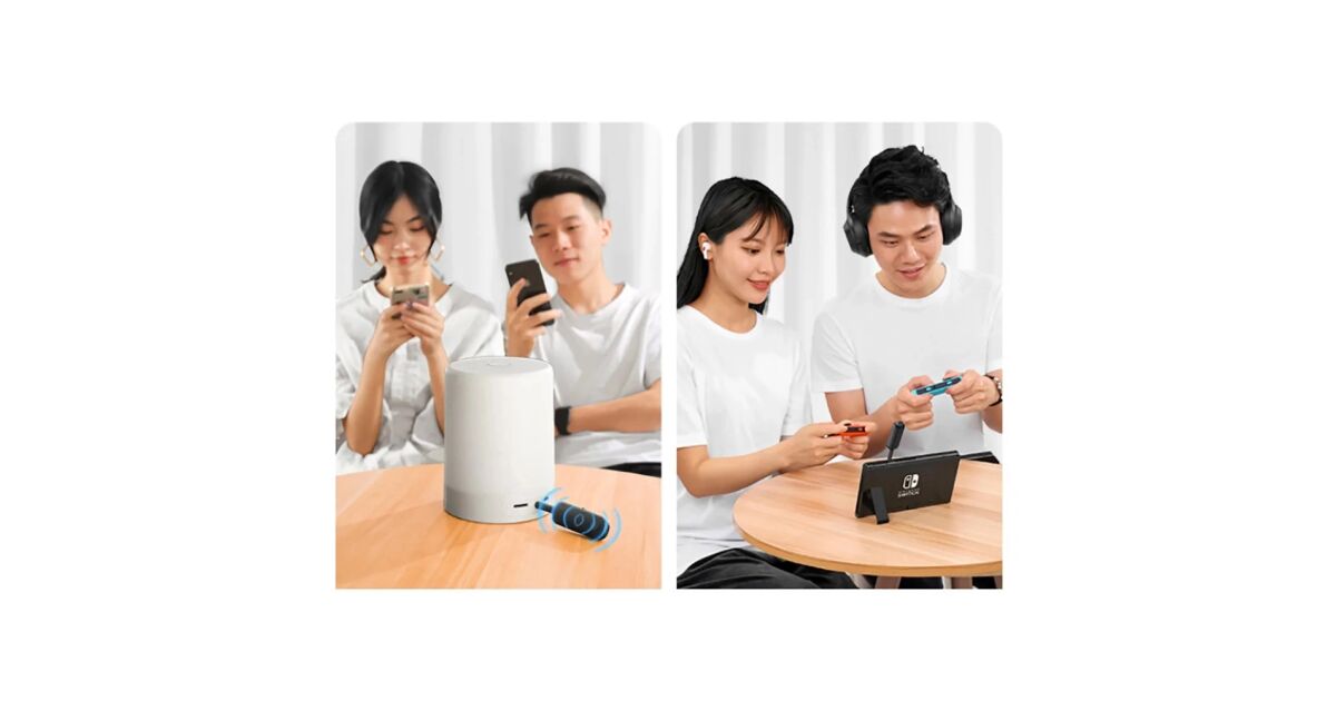 - Több eszköz csatlakoztatása: Egyszerre 2 okostelefon csatlakoztatható vevőként, 2 pár fejhallgató adóként.