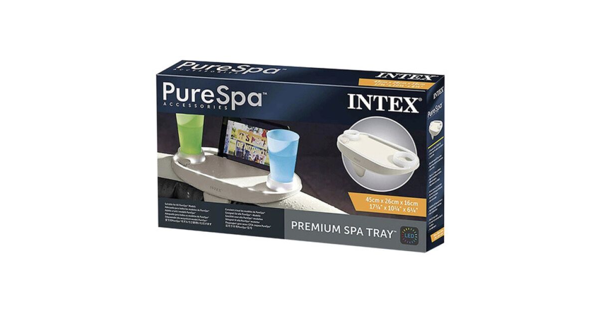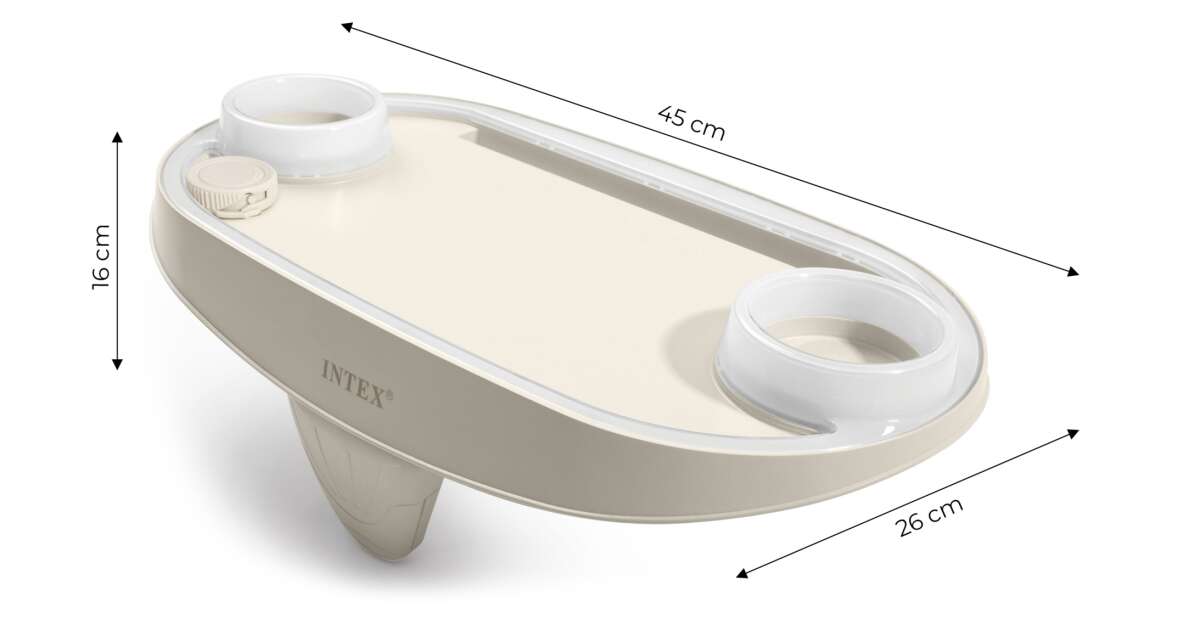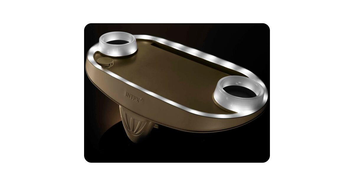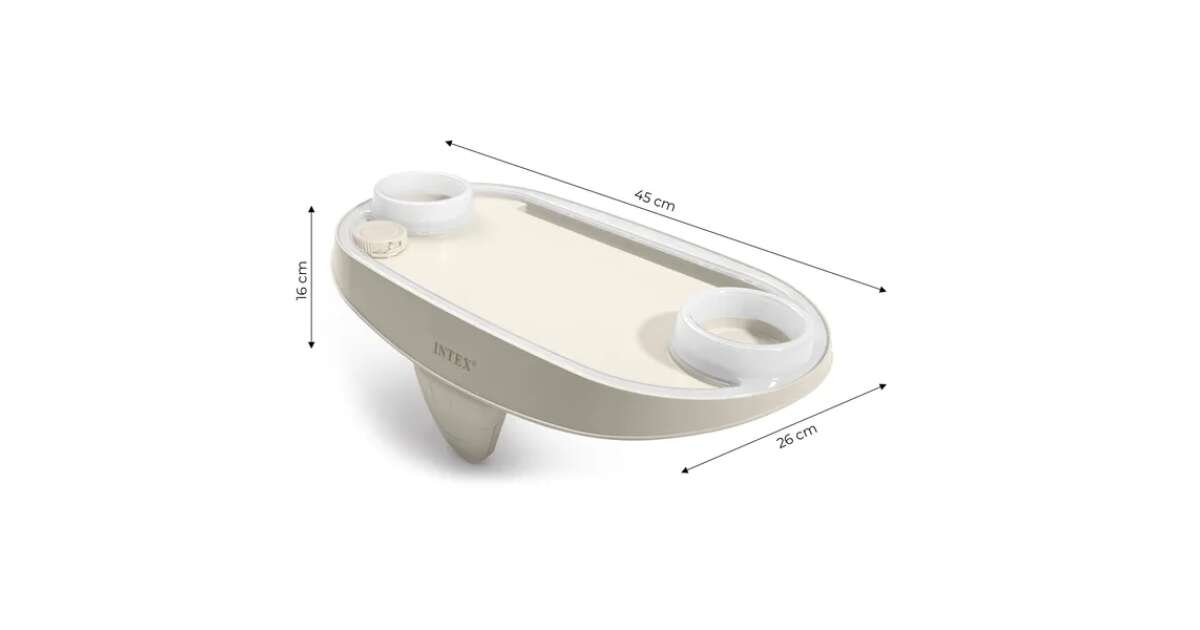 Élvezze a maximális kényelmet és hangulatot Intex pezsgőfürdőjében ezzel a praktikus tálcával! Két italtartóval, beépített telefon/tablet tartóval és hangulatos LED világítással felszerelve, minden kéznél lesz, amire szüksége van a tökéletes relaxációhoz.