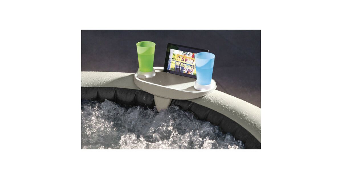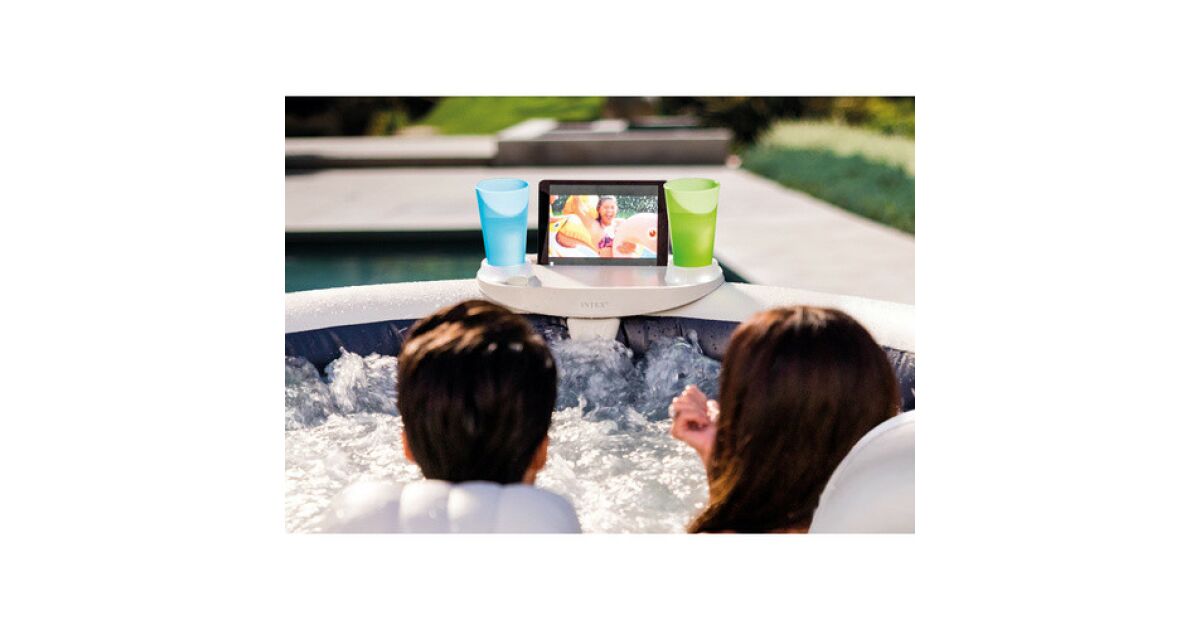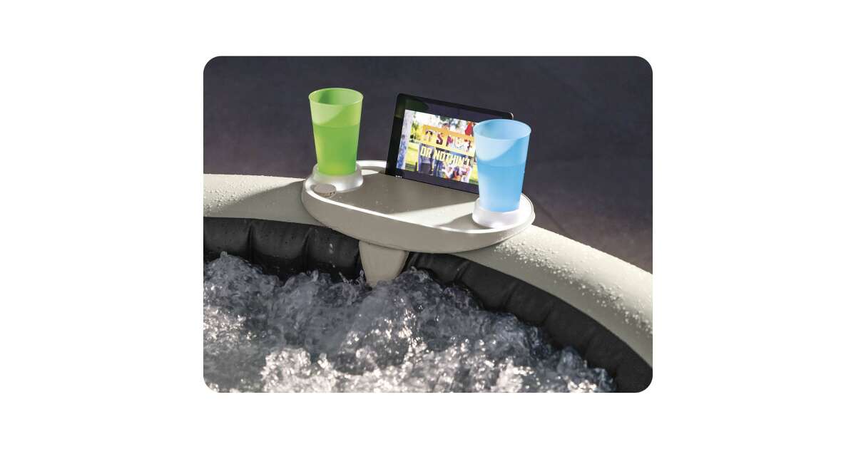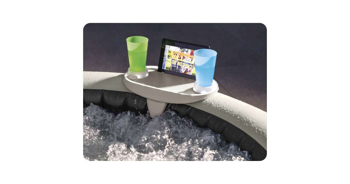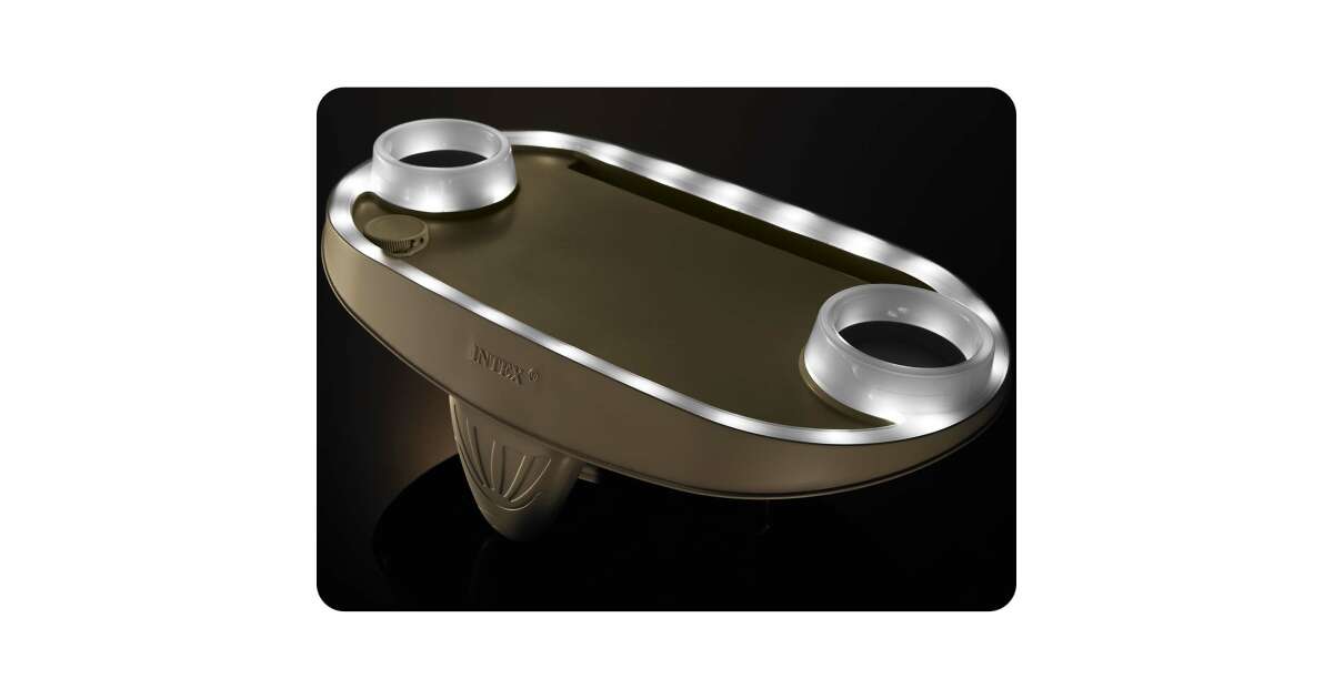 Élvezze a maximális kényelmet és hangulatot Intex pezsgőfürdőjében ezzel a praktikus tálcával! Két italtartóval, beépített telefon/tablet tartóval és hangulatos LED világítással felszerelve, minden kéznél lesz, amire szüksége van a tökéletes relaxációhoz.