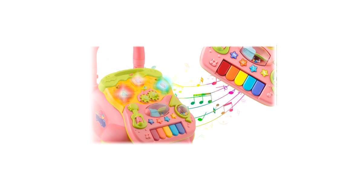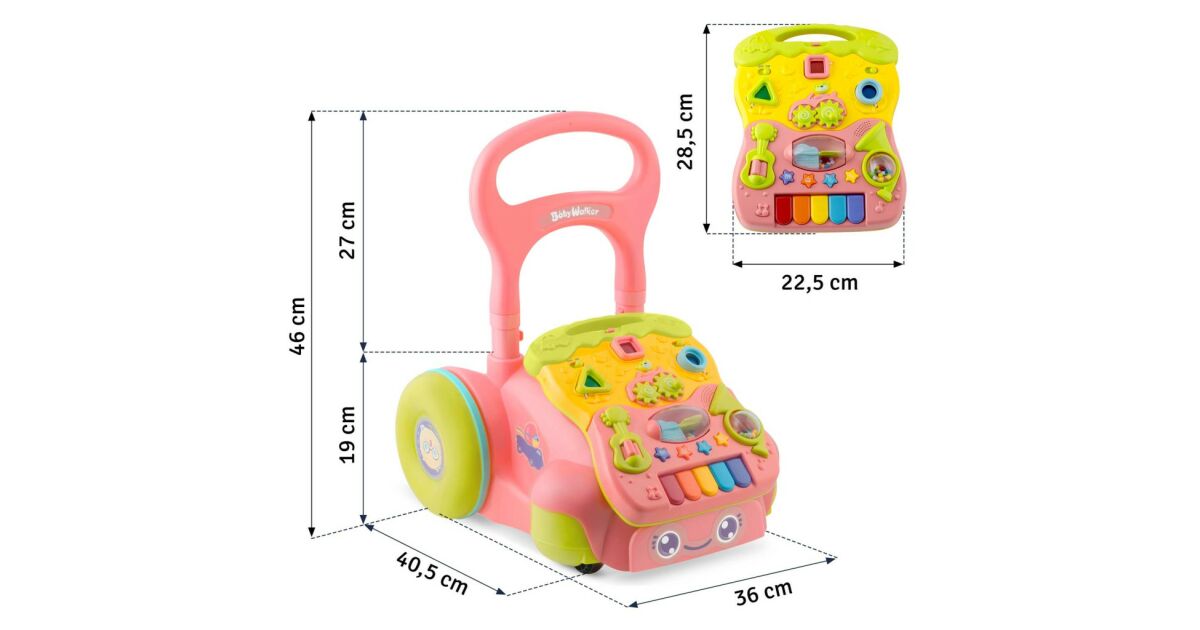 Ez a vidám, rózsaszín járássegítő tökéletes társ a babád első lépéseihez! Nem csak segíti a járás elsajátítását, de szórakoztató és fejlesztő játékokkal is tele van. Kényelmes fogantyúja biztonságos kapaszkodót nyújt, míg a színes, interaktív játéktábla fejleszti a baba finommotorikus képességeit és a zenei érzékét. 🎶