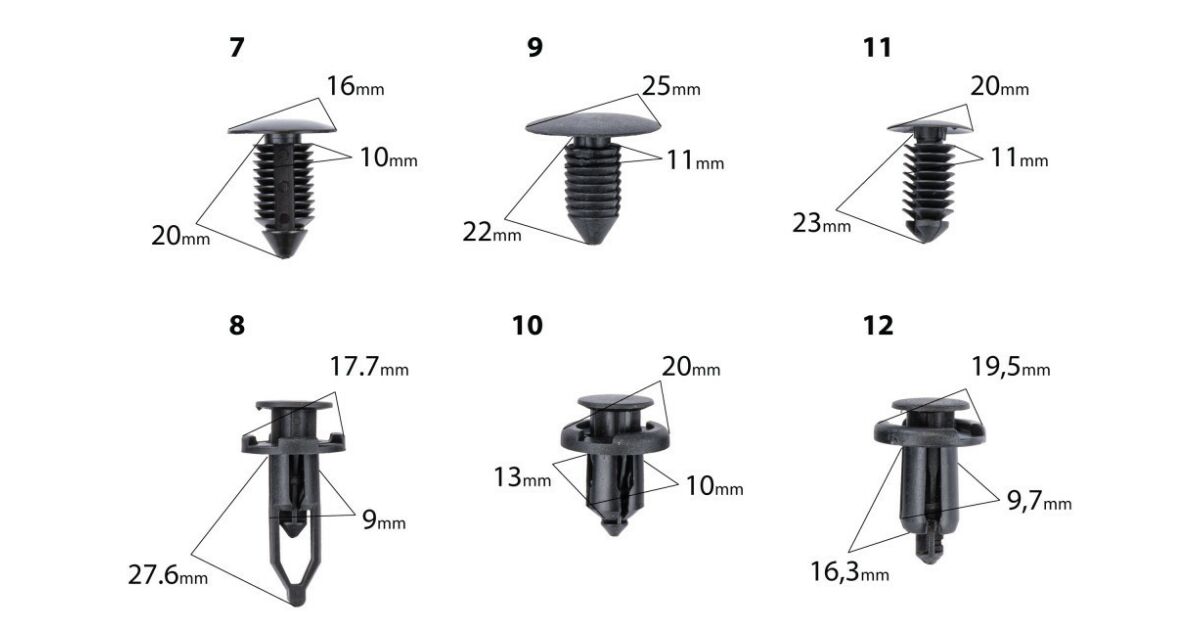 Ez a 240 darabos univerzális kárpitkapcs készlet minden szükséges klipszet tartalmaz, amire szükséged lehet autód vagy bútorod kárpitozásához. A különböző méretű és típusú kapcsok széles választékával könnyedén megtalálod a megfelelő darabot minden feladathoz.