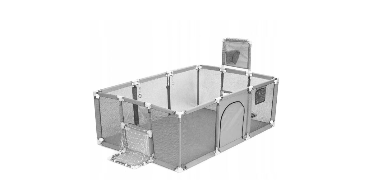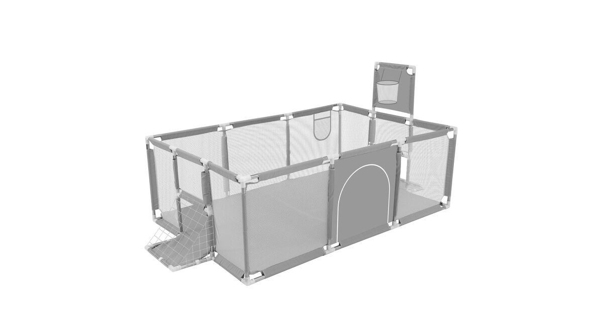 Ezt a terméket így is ismerheted: Pepita PLAY Járóka sarok- és ütközésvédővel + kosárpalánkkal 120x180cm #szürke