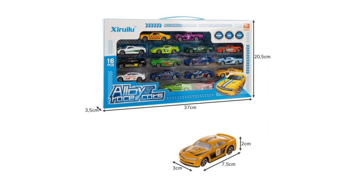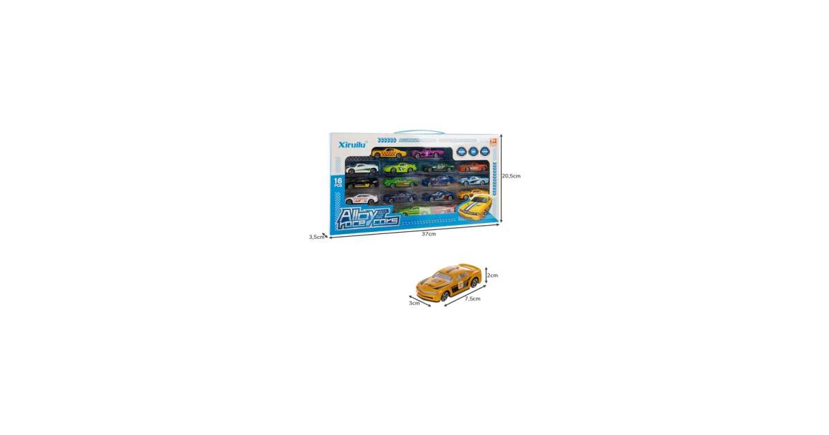 Ez a 16 darabos fém verseny autó készlet órákig tartó szórakozást biztosít a kicsiknek! A változatos színek és dizájnnal rendelkező autók garantálják a vidám játékot. Kiváló minőségű fémből és műanyagból készültek, így strapabíróak és ellenállnak a mindennapi használatnak.