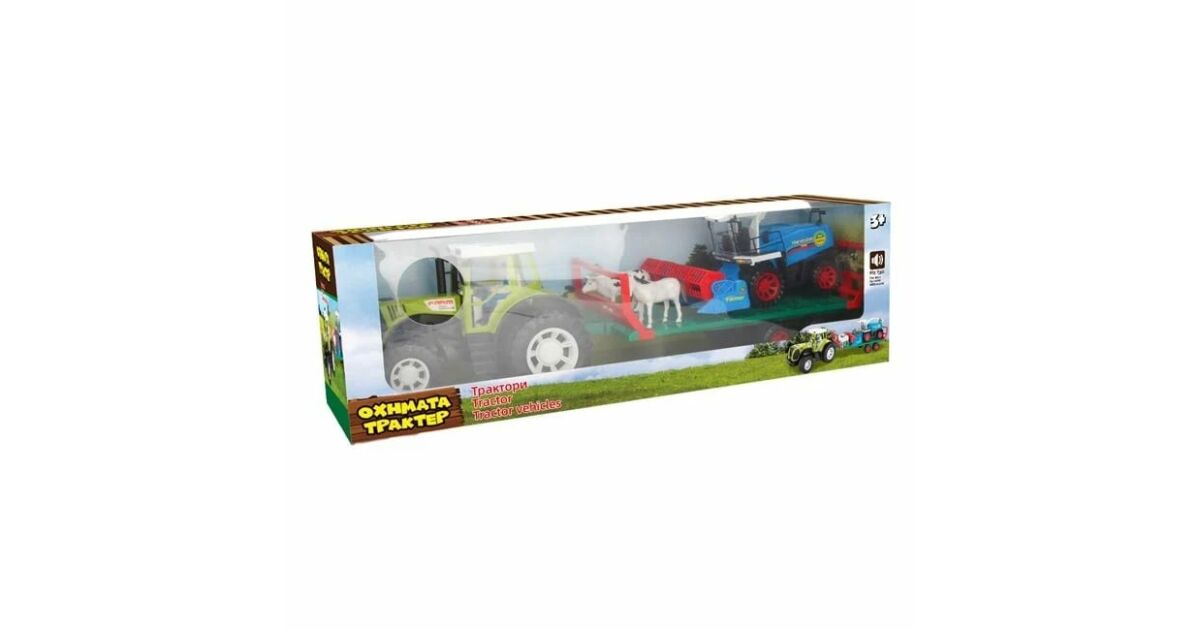 Ezt a terméket így is ismerheted: Traktor pótkocsival, cséplőgép, 2 élethű állattal, 67.5x19x20cm, több színben, több színű