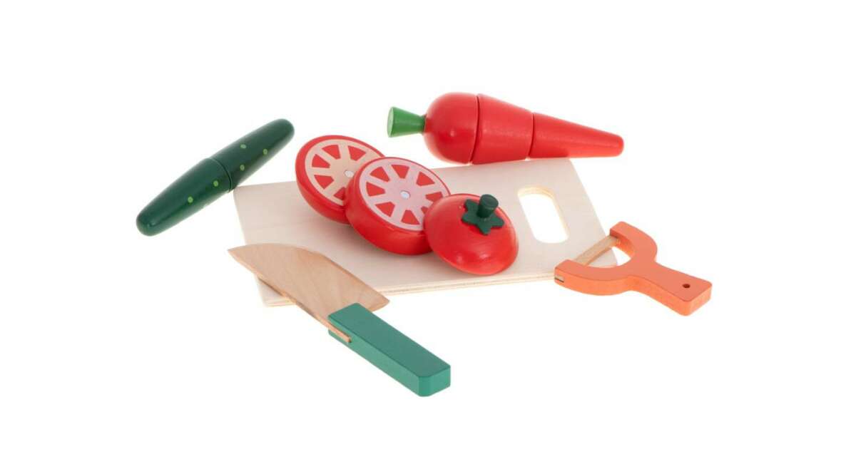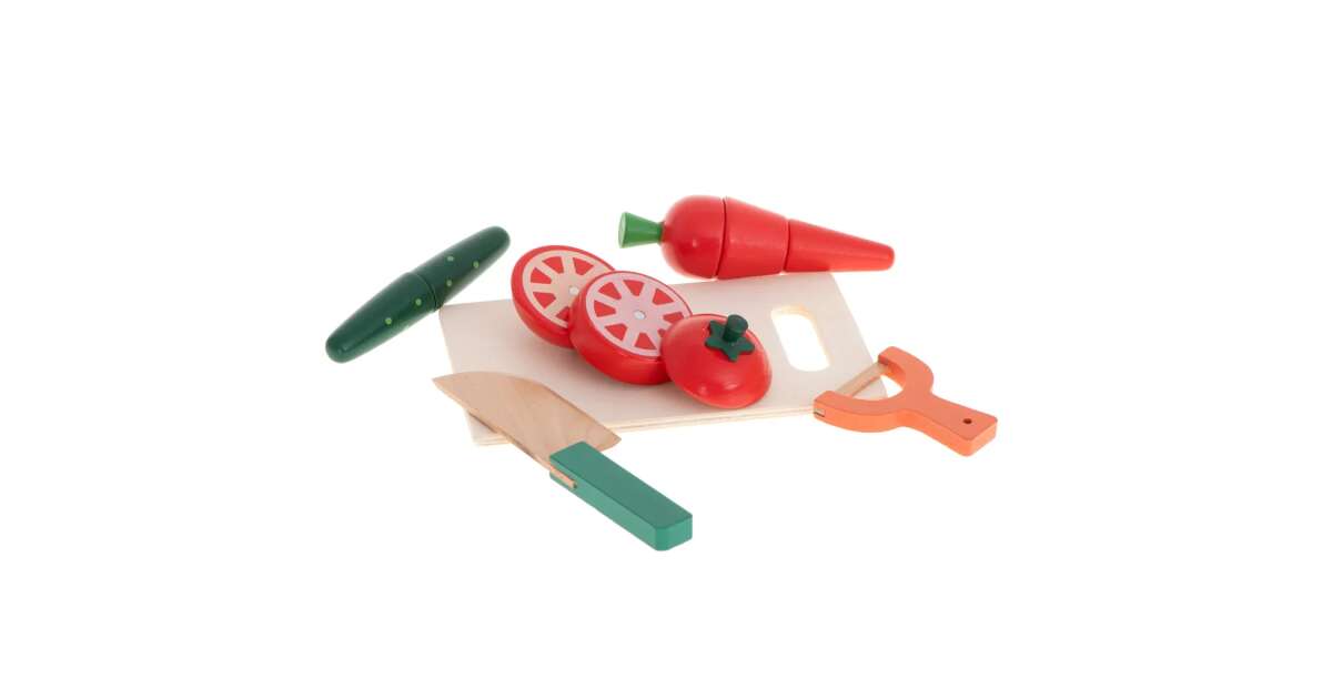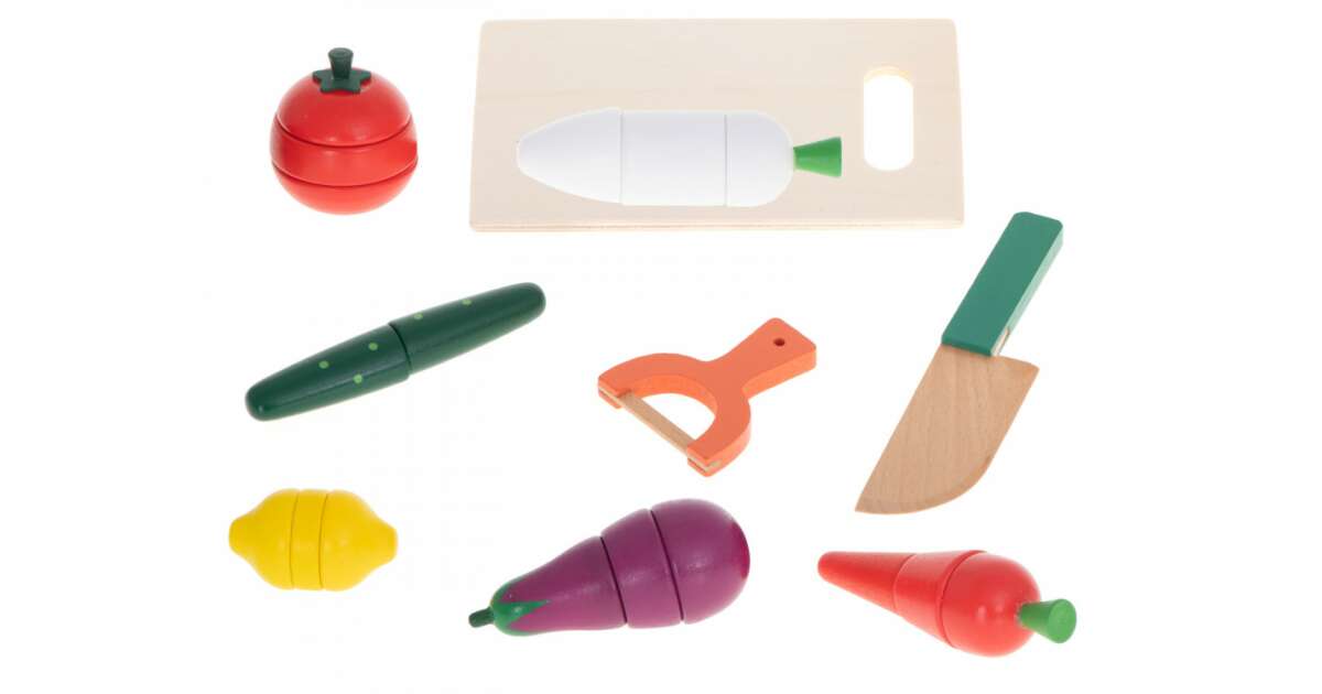 Ez a vidám fajáték tökéletes arra, hogy a kicsik megtanulják a zöldségek vágását és a konyhai eszközök használatát biztonságos és szórakoztató módon. A mágneses darabok könnyen összeilleszthetők, így a játék újra és újra kezdődhet! A készlet élénk színekkel és barátságos formákkal van ellátva, ami vonzza a gyerekek figyelmét.