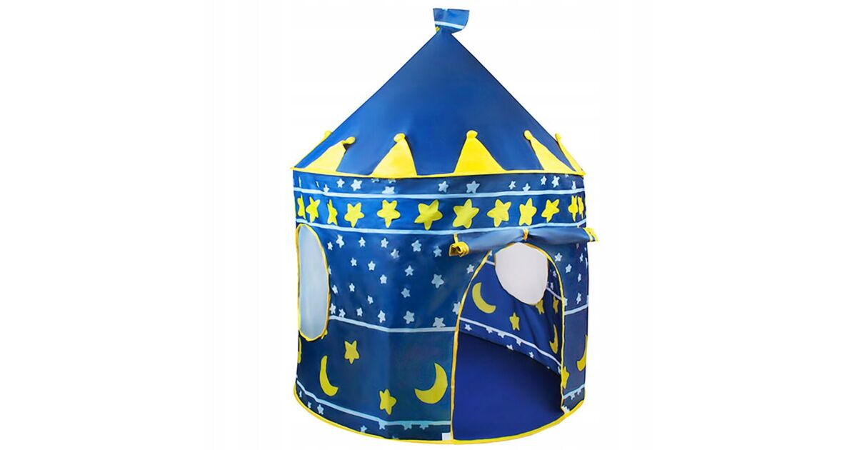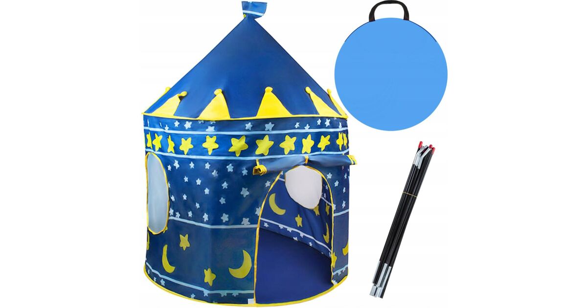 Ezt a terméket így is ismerheted: Gyermek játszósátor, Kruzzel, kastély típusú, fedéllel, hold és csillagok mintával, kék, 105x135 cm, 105x135 cm