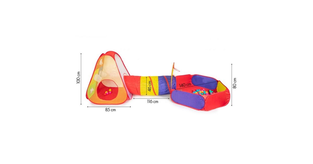 Ez a fantasztikus 3 az 1-ben játszósátor, alagút és labdamedencével tökéletes helyszínt biztosít a gyermekek számára a játékhoz és a szórakozáshoz. A színes, vidám kialakítás azonnal magával ragadja a kicsiket, akik órákig el tudnak játszani benne. A sátorban található célba dobó játék fejleszti a finommotoros készségeket és a célzást, míg az alagút és a labdamedencében való játszás mozgáskoordinációt és kreativitást fejleszt.