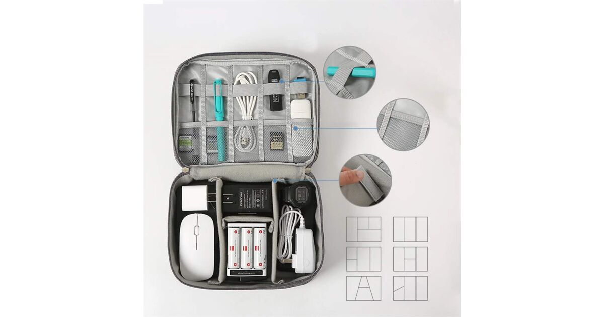 Ez a praktikus, vízálló táska tökéletes megoldás az elektronikai eszközeid és kiegészítőid rendszerezett tárolására és szállítására, akár utazás közben is! Több rekeszének és zsebének köszönhetően minden kábel, töltő, fejhallgató, memóriakártya és egyéb apró eszköz biztonságosan és rendezetten elfér benne. Mondj búcsút a kábelrengetegnek! ✈️